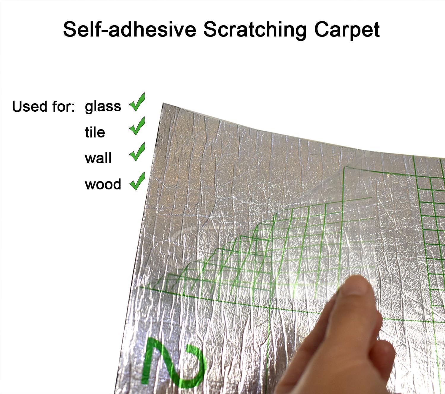 • Самозалепващ се дизайн: долната част на самозалепващия се килим за котки е изработена от 100% самозалепващ се материал, който може да се залепи здраво за стена, дърво, стъкло и котешки дървета, котешки кули.