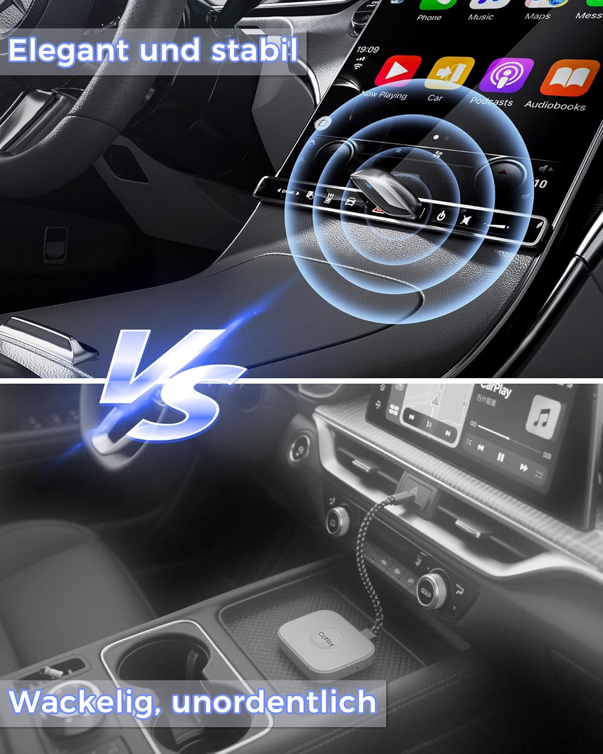 • Ново подобрени двойни чипове: Нашият безжичен CarPlay адаптер разполага с 5.8 GHz WiFi и 2.4 GHz Bluetooth. Оптимизираната производителност осигурява по-стабилна връзка и практически без забавяне предаване. Насладете се на светкавично бързо CarPlay изживяване с безпроблемно възпроизвеждане на музика, навигация и разговори със свободни ръце.