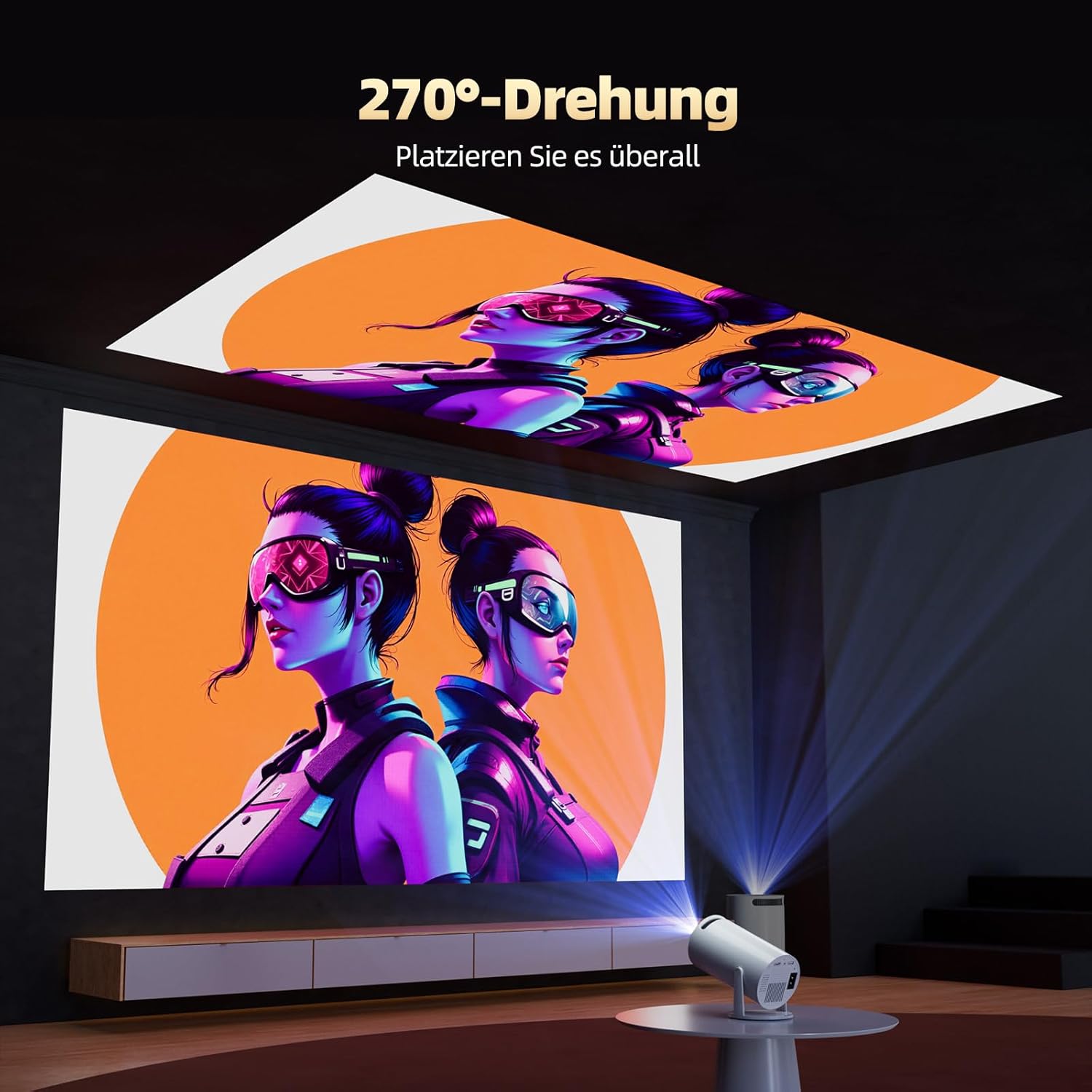 2025 Мини проектор 4K поддържа Android 11, Преносим проектор FHD 1080P с WiFi 6 BT 5.0, Проектор за малко домашно кино с 270° въртене, трапецовидност за кола, съвместим с HDMI/TV Stick/Memory Stick/лаптоп