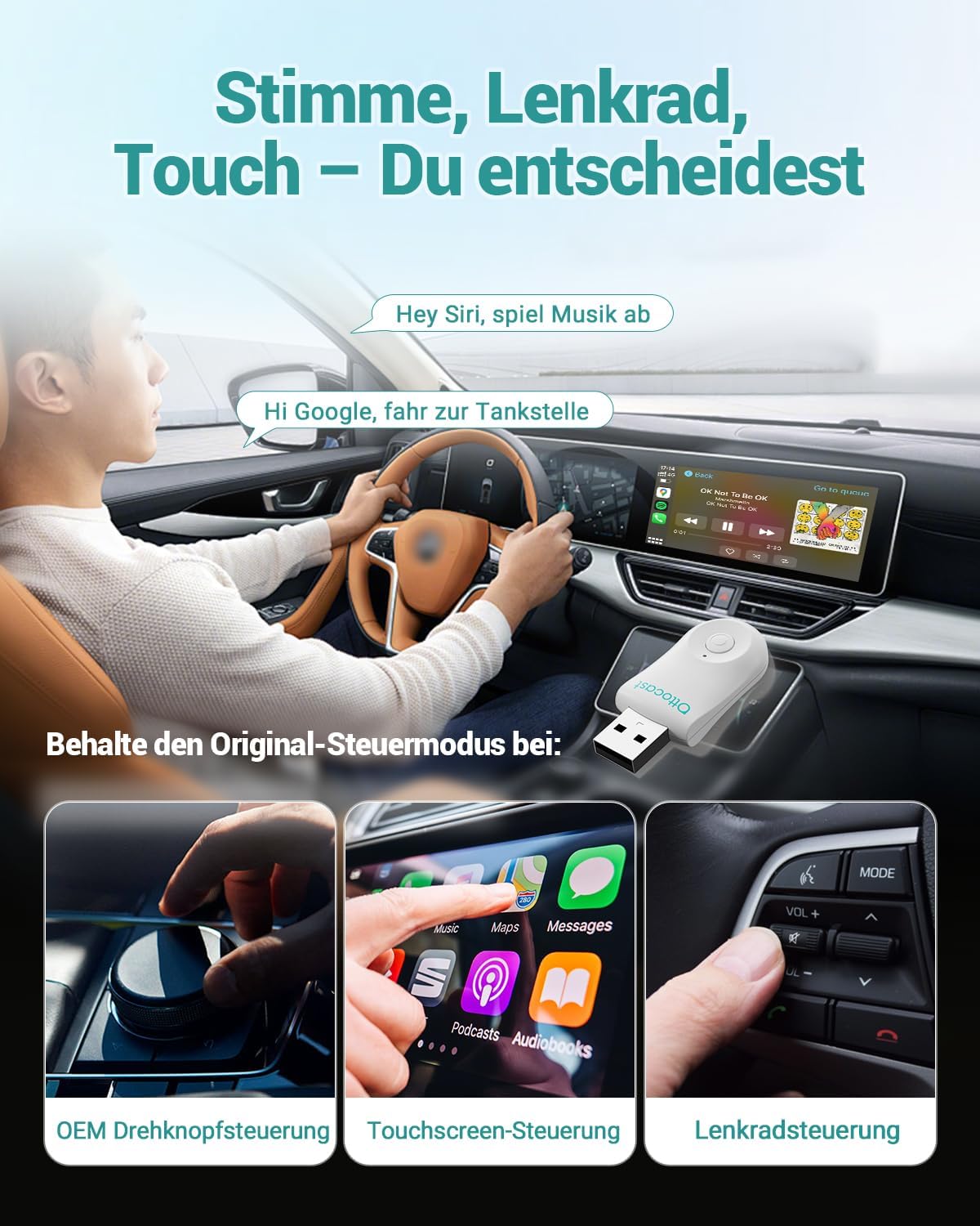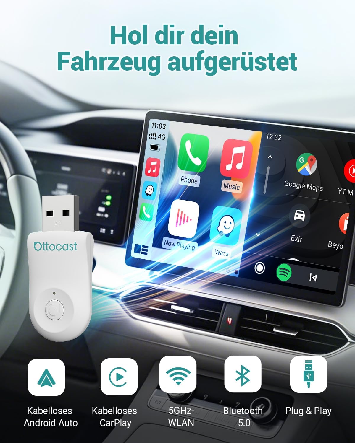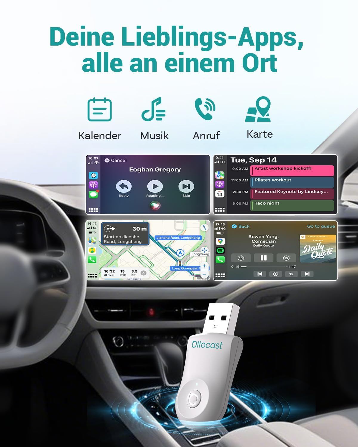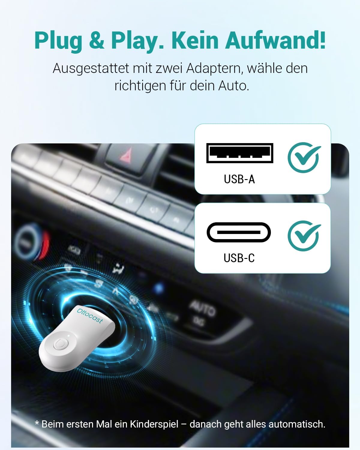 • 【Безпроблемна интеграция – Поддържайте пълен контрол над автомобила си!】Кой казва, че технологиите трябва да са сложни? С безжичния CarPlay адаптер OTTOCAST MINI можете да продължите да използвате всички вградени контроли на автомобила си – бутони, сензорен екран или въртящи се копчета – както винаги. Достъпвайте до навигация, музика, обаждания и съобщения, използвайки познатите си контроли, докато се наслаждавате на най-новата безжична технология. Това е перфектната комбинация от класическо управление и иновативна технология.