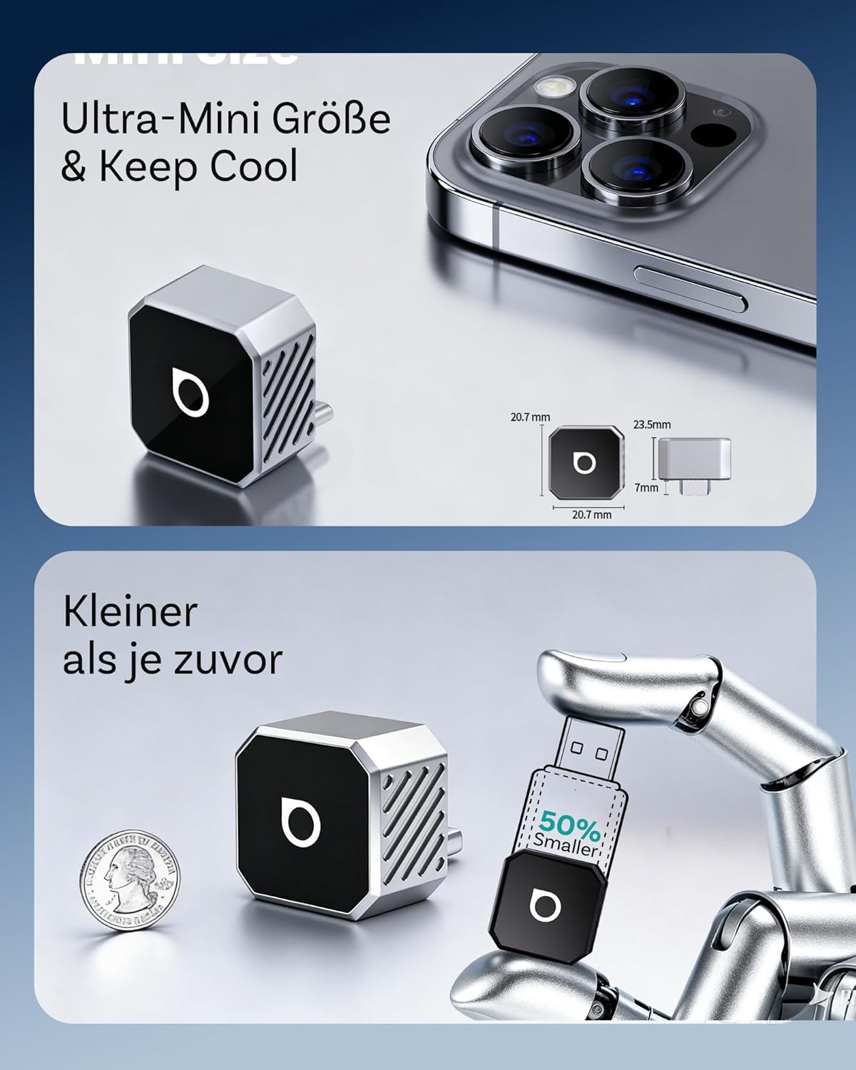 • 【Толкова малък, толкова умен – размерът наистина ли има значение?】Абсолютно. Безжичният CarPlay адаптер Ottocast Mini Pot е едва по-голям от нокът – с 50% по-малък от предишната версия. Притеснявате се за боравенето? Не се притеснявайте. Текстурираната повърхност осигурява сигурно захващане при включване и изключване.