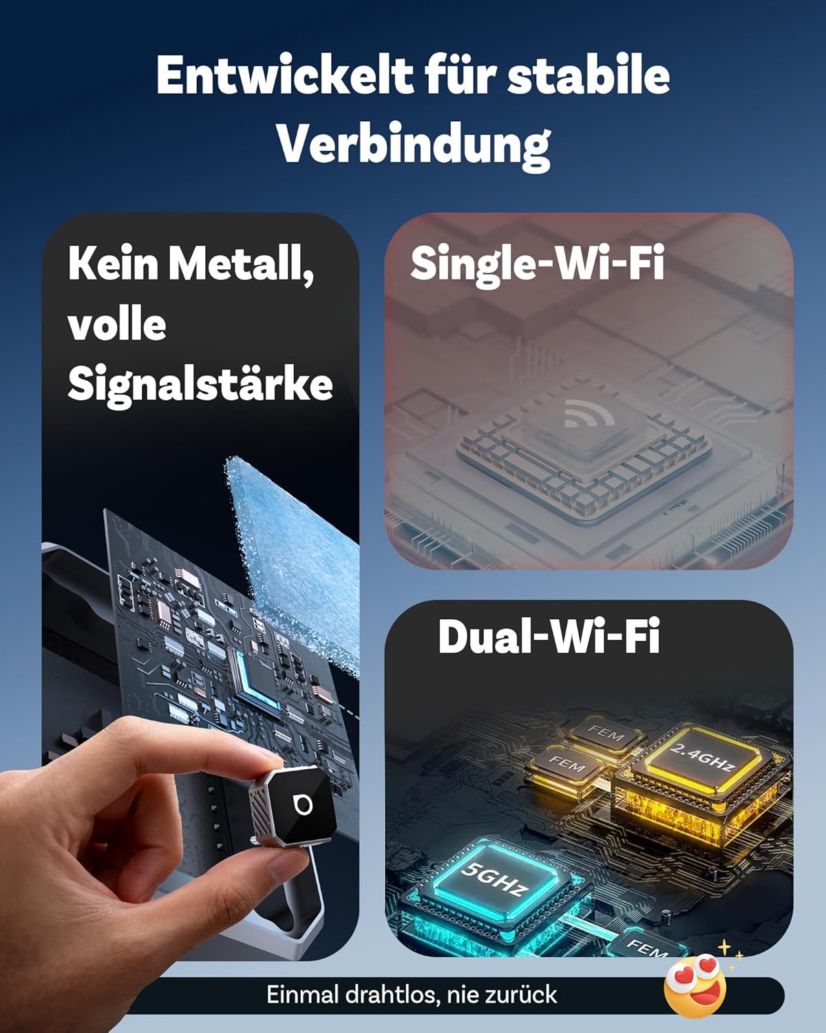 • 【Настройте го веднъж, свържете се завинаги – наистина ли е толкова просто?】Да! Настройте го веднъж и безжичният CarPlay & Android адаптер ще направи останалото. Благодарение на двубандовата връзка 2.4GHz + 5GHz, ще се наслаждавате на бързи и стабилни връзки – дори в натоварен градски трафик.