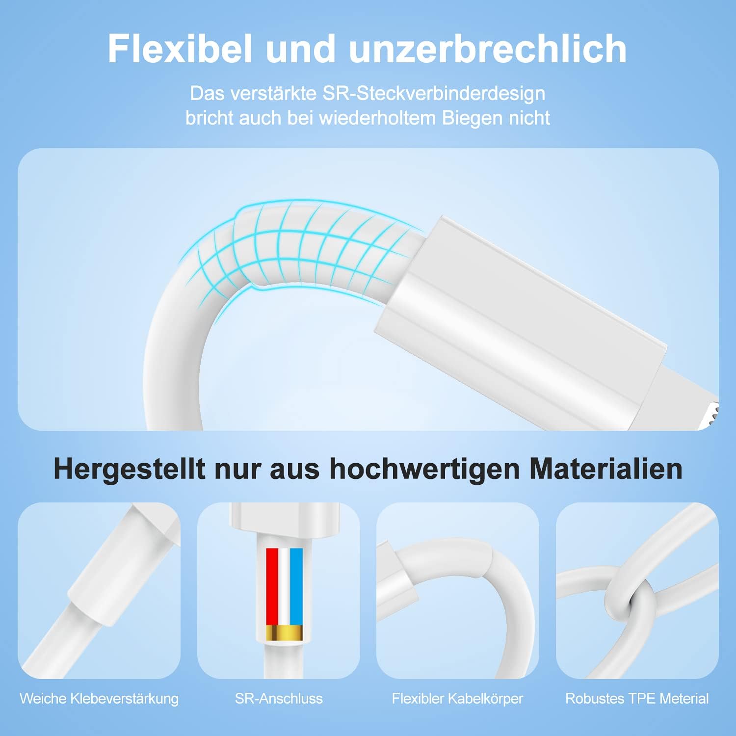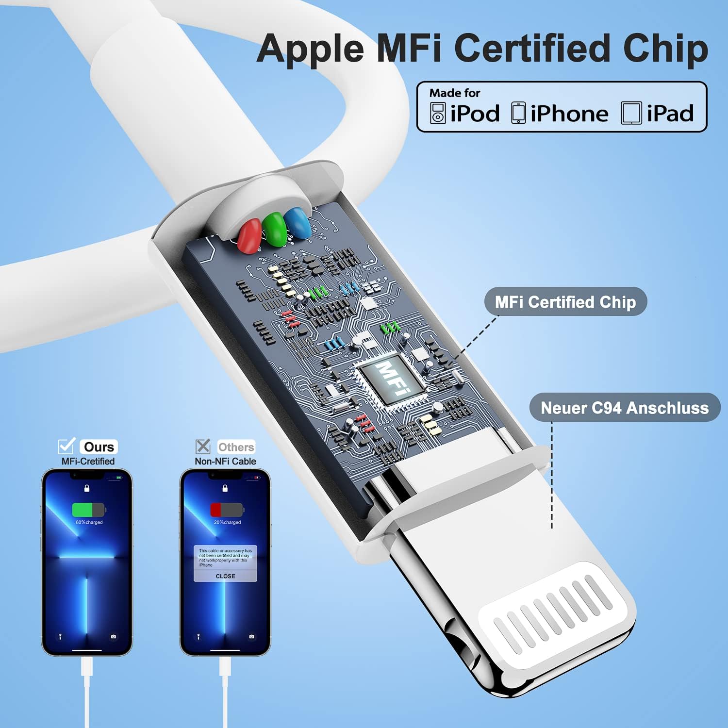 • 2 м кабел: 3-в-1 кабел за зареждане на iPhone и iWatch с оригинален MFI чип и вградена тел, изработен от висококачествен ABS+ PC и чиста медна тел, огъван е над 10 000 пъти, за да се избегне скъсяване на живота поради стареене и употреба. Дължината от 1,8 м, без заплитане, е удобна за употреба, докато зарядното устройство е у дома/офиса/при пътуване, в леглото, хотелските стаи и много други места.