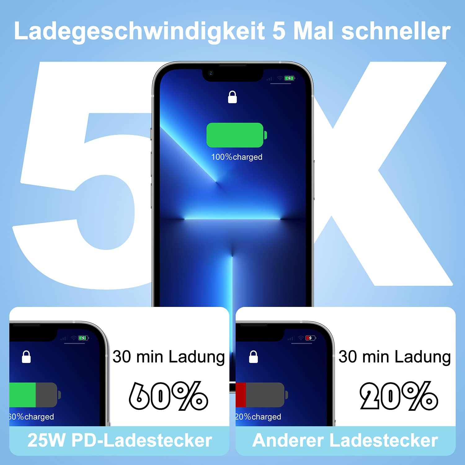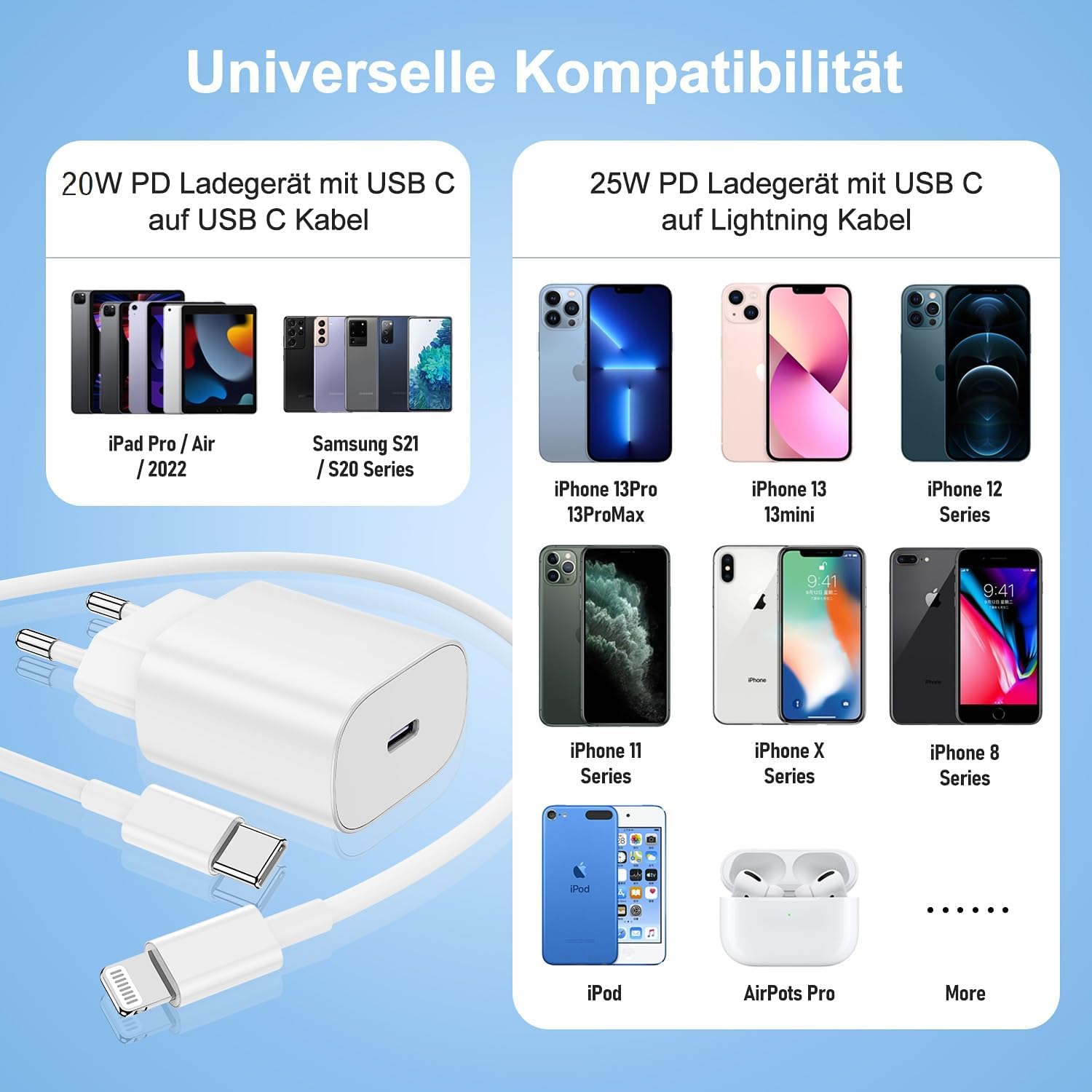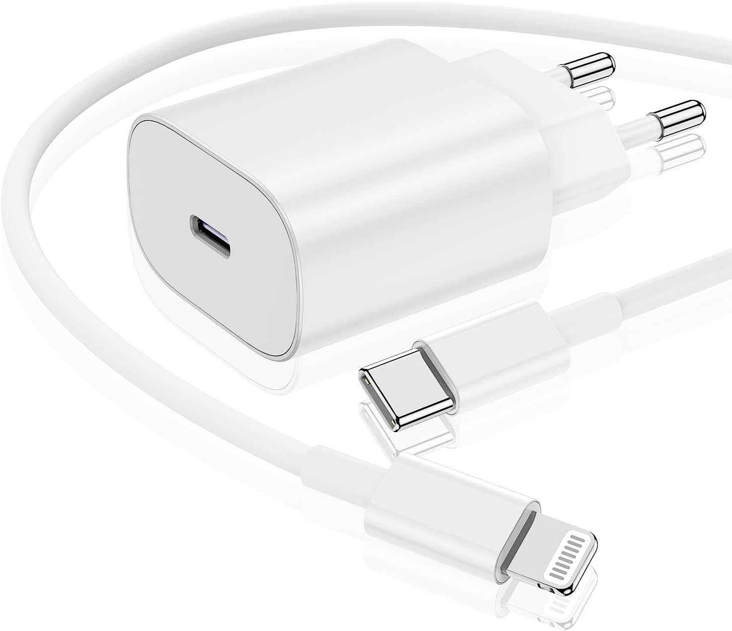 20W бързо зарядно устройство за iPhone 14, за Apple 13 USB C зарядно с кабел за iPhone 2M, USB-C адаптер за зареждане с кабел за зареждане Type-C към Lightning за iPhone 14 Pro Max/13/12 Mini/11/XS/8