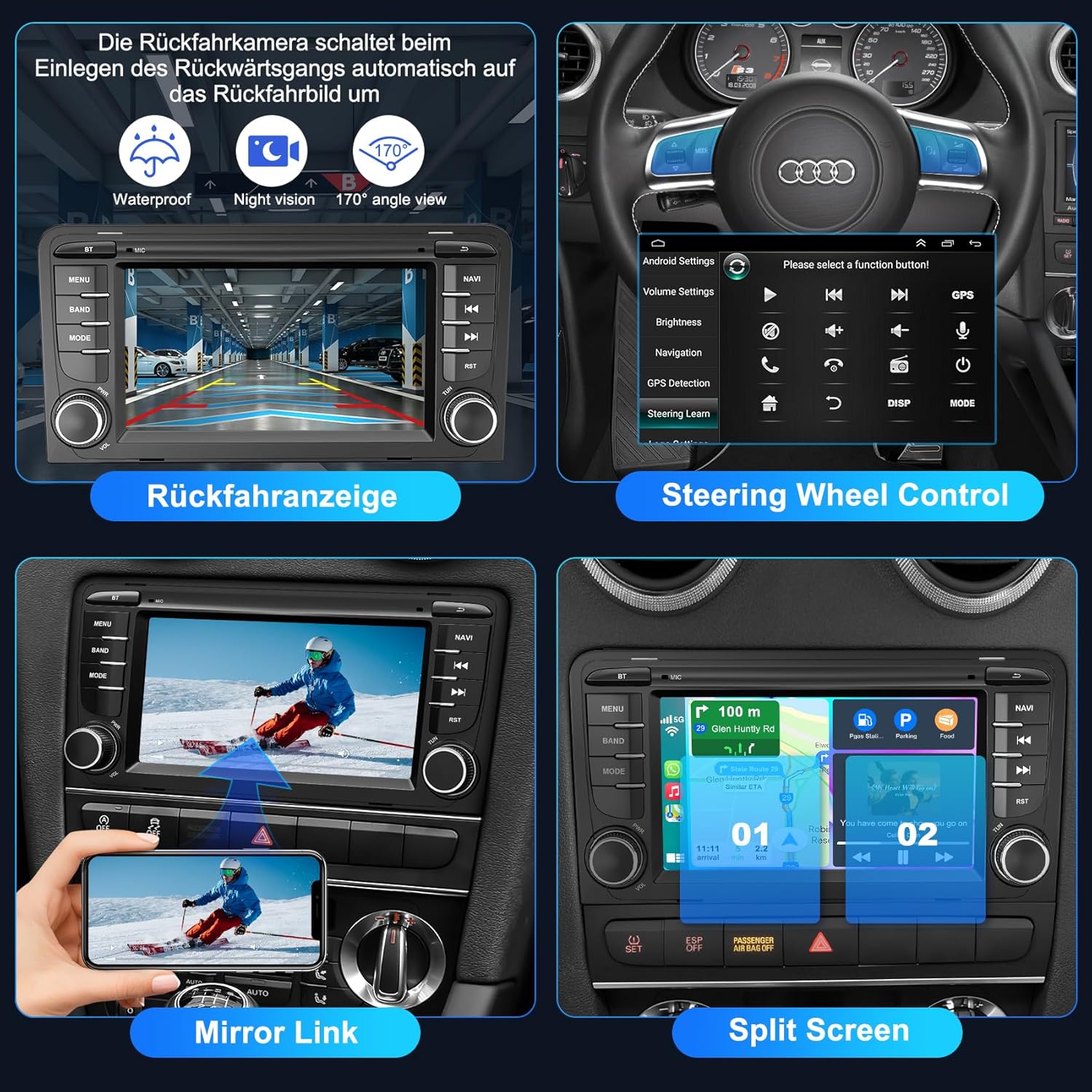 Audi radio supports the original steering wheel control functions. Easy to switch songs and radio channels and adjust the volume, which is more convenient for operation and safer for driving. Go to settings steering learn for learning the steering wheel buttons.