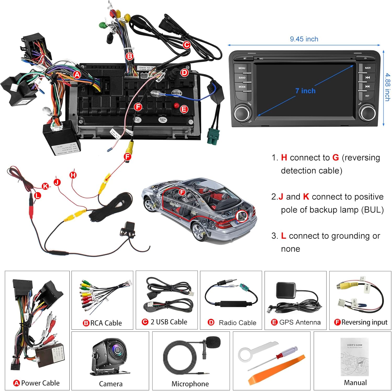 This A3 radio head unit supports return input and automatically switches when reversing or parking the vehicle. Ensure safety when driving. The reversing ambient live detection, safe and comfortable parking aid. Reversing camera is included: 170° wide angle, night vision and IP69 waterproof.
