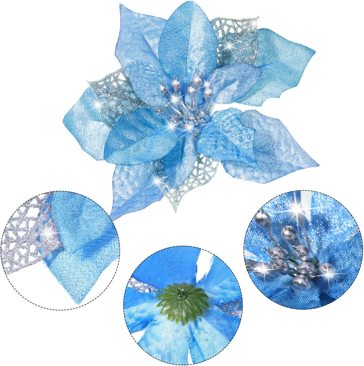 • Дизайн: Изкуствените цветя коледна звезда имат двоен слой и кухина, елегантен дизайн и могат да бъдат прикрепени към клоните на вашата елха, да украсят гирлянд или да бъдат завързани с панделка като допълнение към подарък, или да бъдат прикрепени към свещник като украса за камина или за Бъдни вечер.