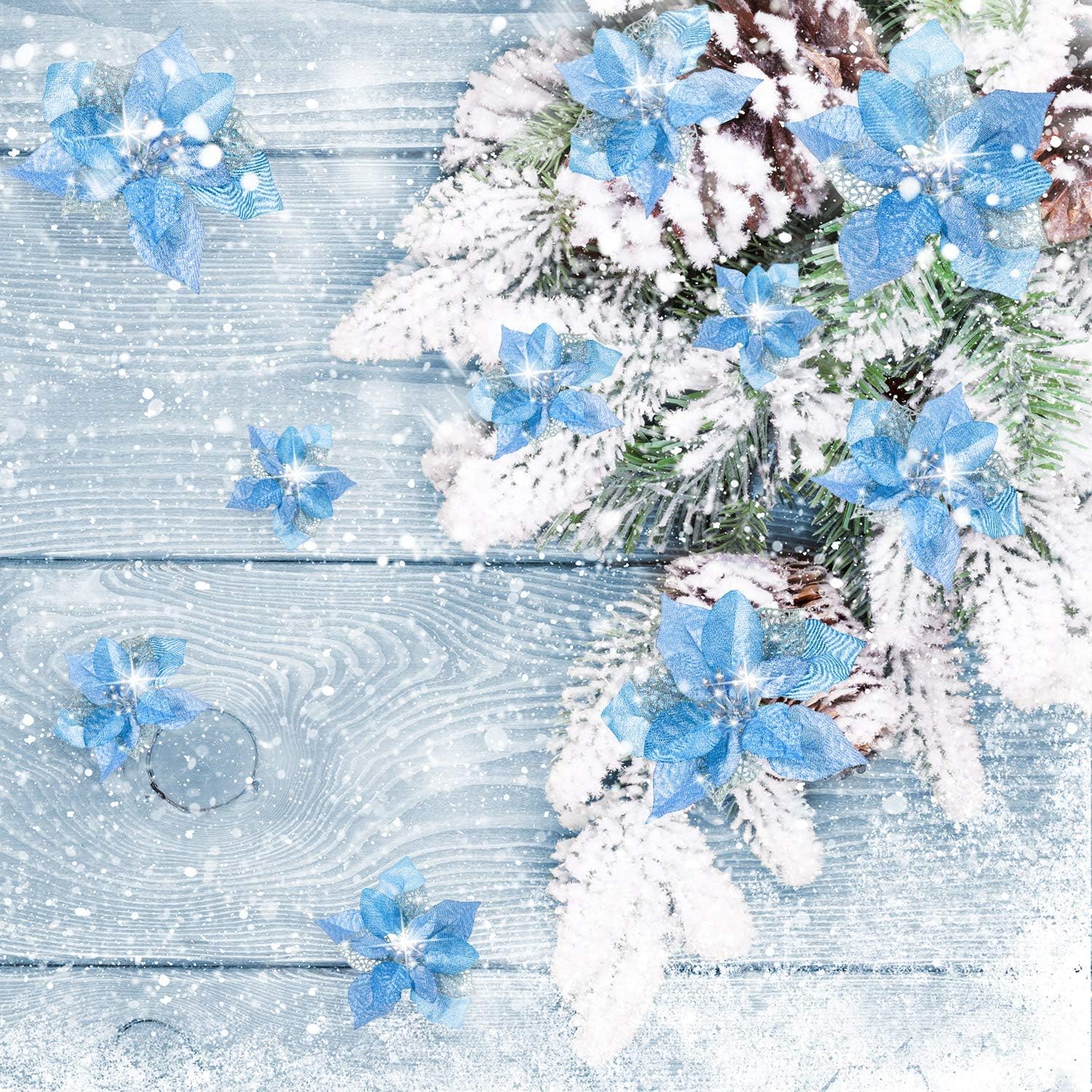 24 броя коледни бляскави коледни цветя със звезди, изкуствени коледни цветя, сватбени коледни украшения за елха, новогодишни украшения