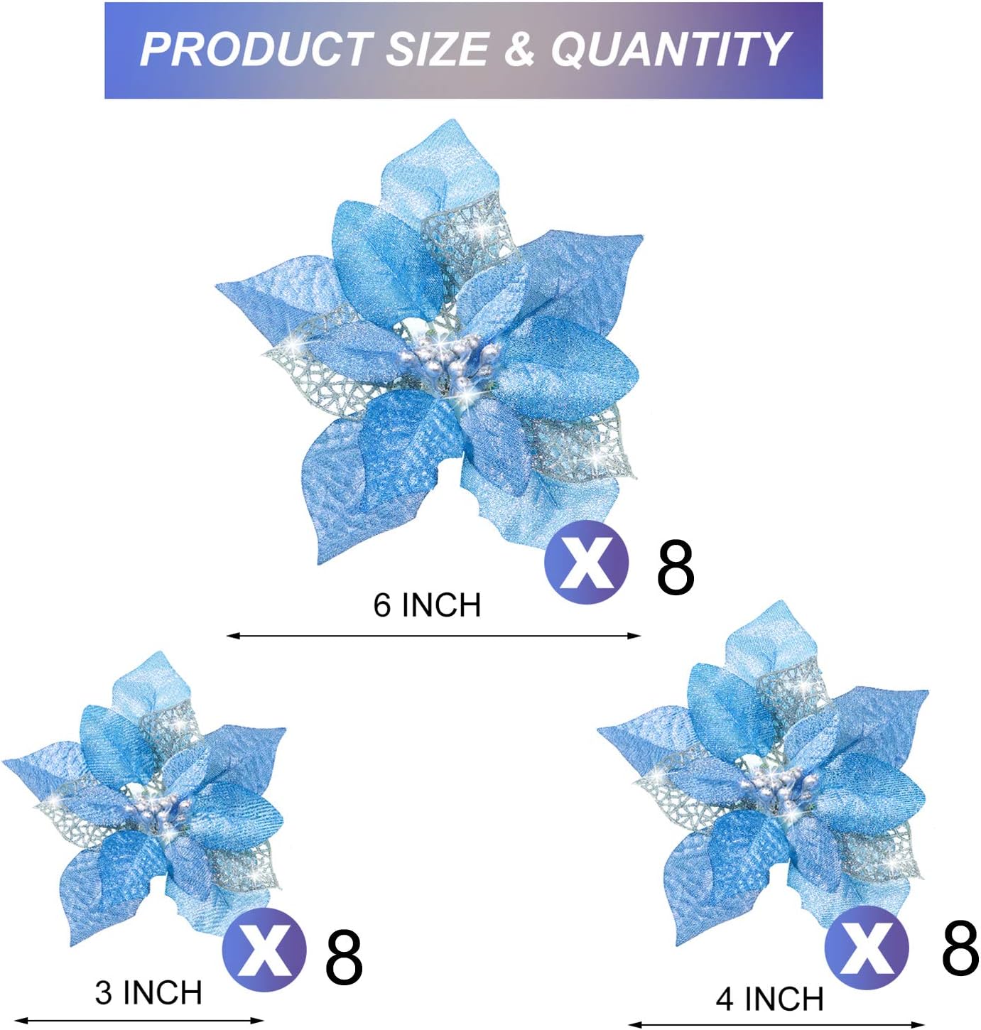 • Размер: диаметърът на блестящите цветове на коледната звезда е приблизително 7,5 см, 10,5 см и 14,5 см, приятен размер и леко тегло за лесна декорация.