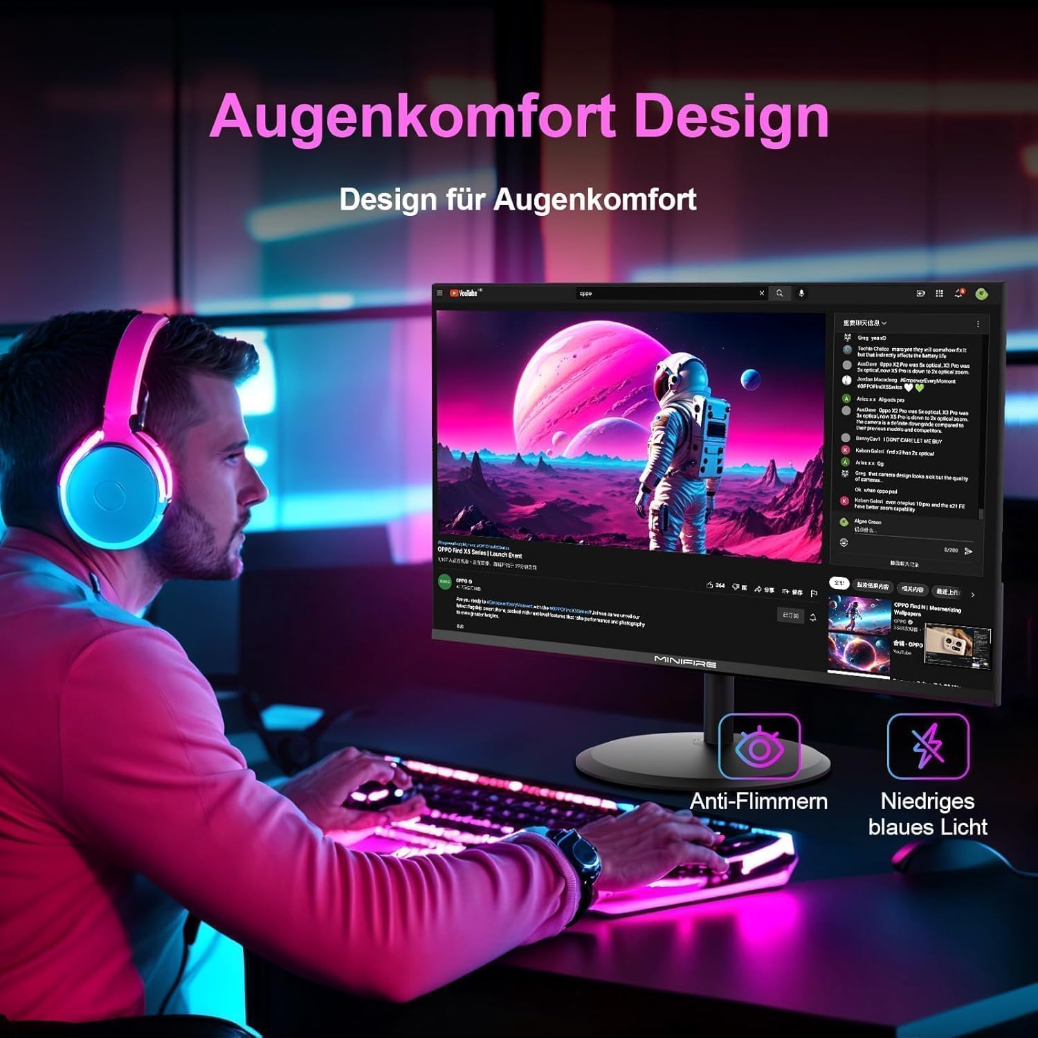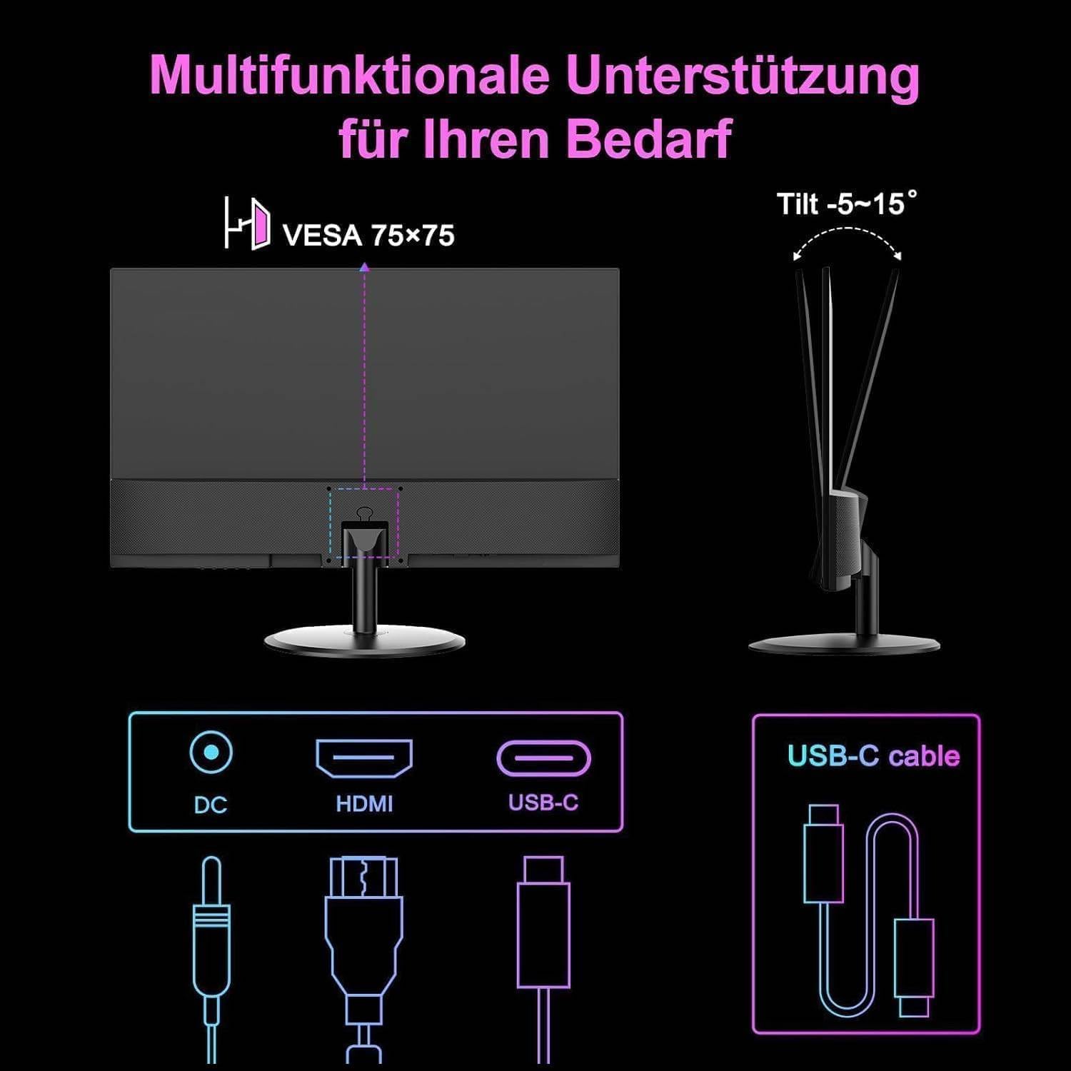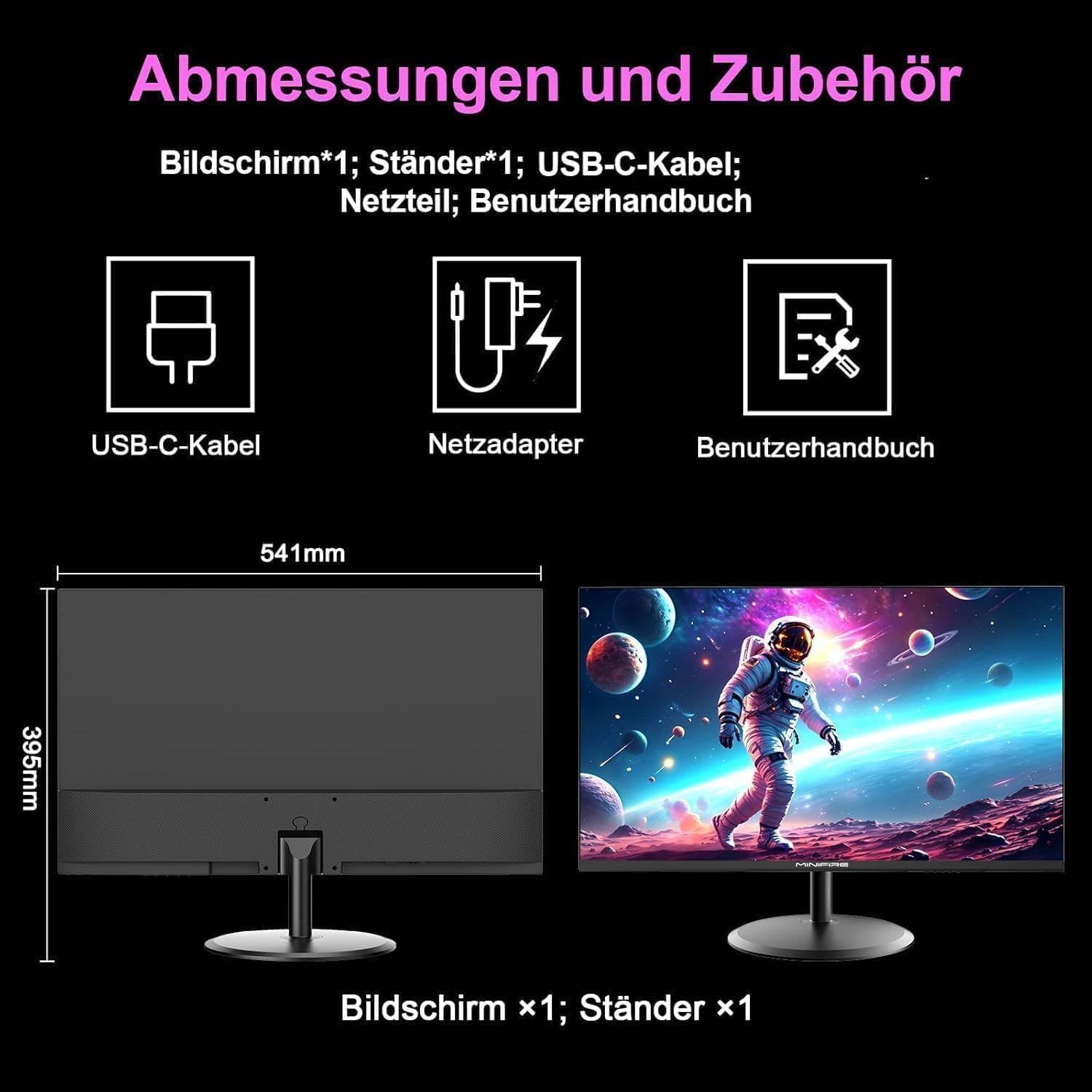 24-инчов FHD USB-C компютърен монитор Minifire - 100Hz, OD 5ms, IPS панел, 1080p (1920 x 1080), AMD FreeSync, sRGB110%, безрамков екран, Eye Care, HDMI 1.4 и Type-C 2.5w (MF24X3AC Type-C кабел)