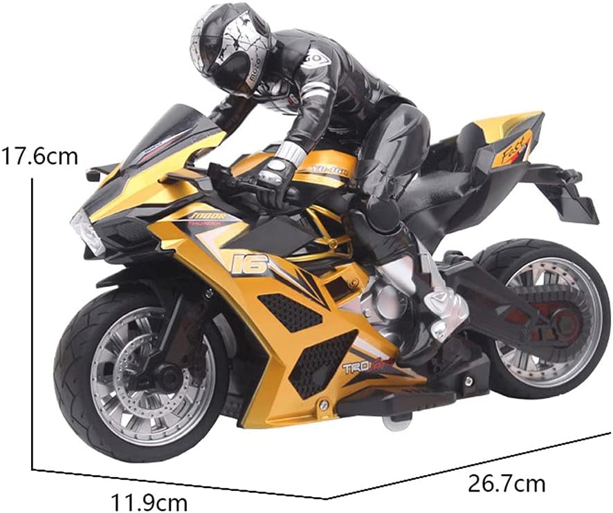 • Мотоциклетът има готина форма. Този RC мотоциклет е добре направен и изглежда добре. Изработен е от висококачествена ABS пластмаса и екологичен материал за защита от падане, който е здрав и устойчив на падане.