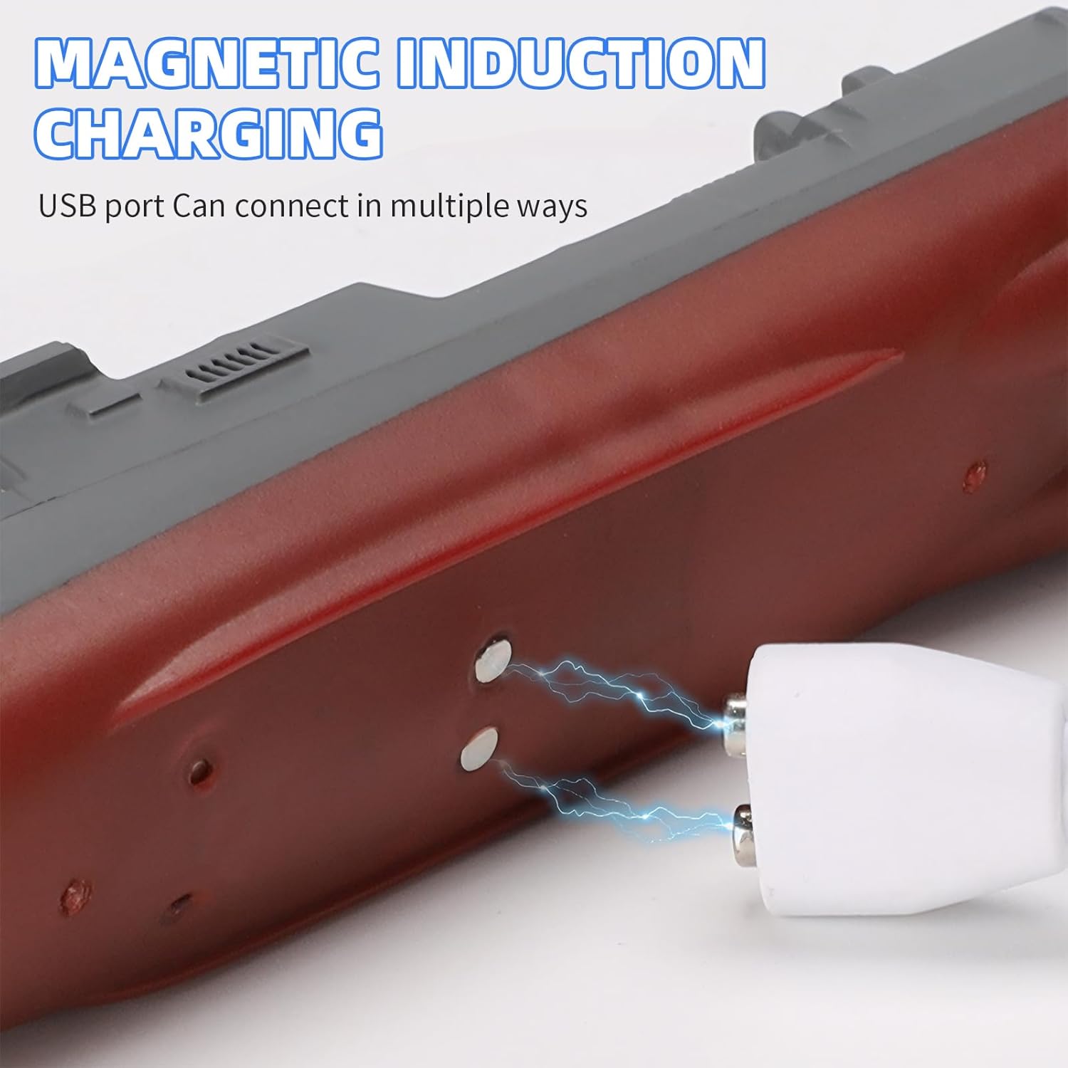 • 【USB магнитно зареждане】Дистанционното управление на бойния кораб използва USB магнитно зареждане, което решава проблемите с проникването на вода и късо съединение в порта за зареждане. Вградена презареждаща се литиево-йонна батерия 3.7 V 150 mAh.