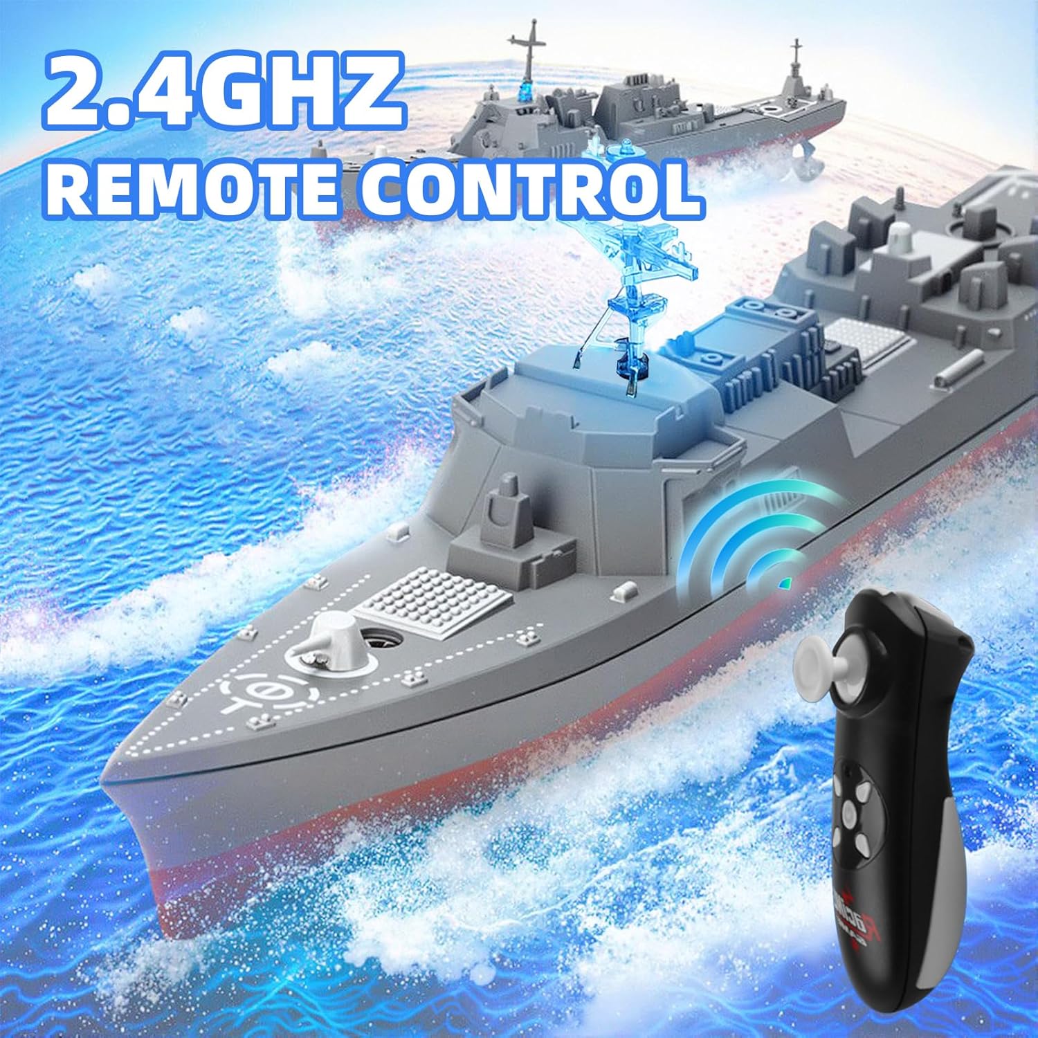 2.4GHz дистанционно управление, военен кораб с дистанционно управление, малък военен кораб, водна играчка с дистанционно управление, модел на разрушител, голям детски подарък