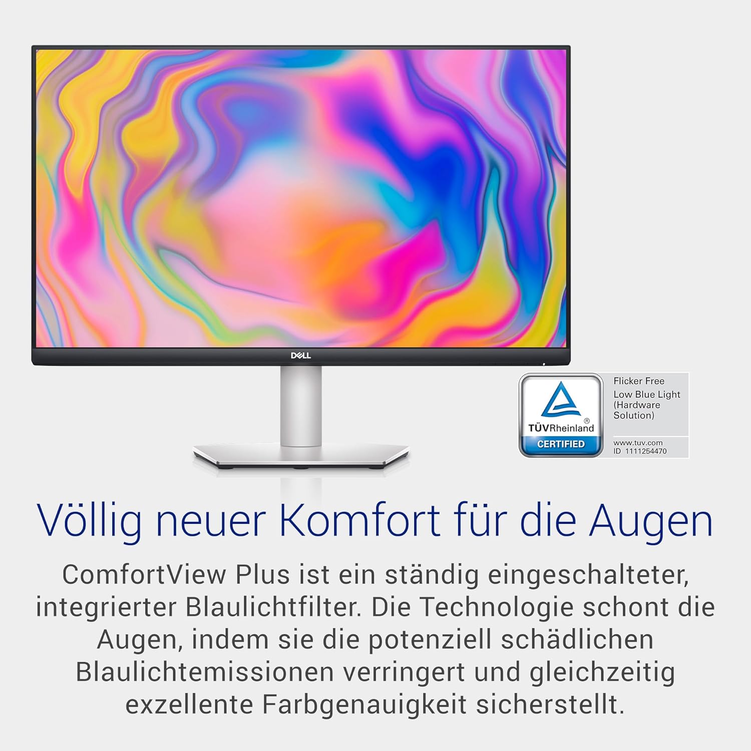 • ПОДОБРЕНА ЗАЩИТА НА ОЧИТЕ: Сертифициран от TÜV Rheinland с 4 звезди с ComfortView Plus за намаляване на вредната синя светлина (≤35%) без загуба на цвят.