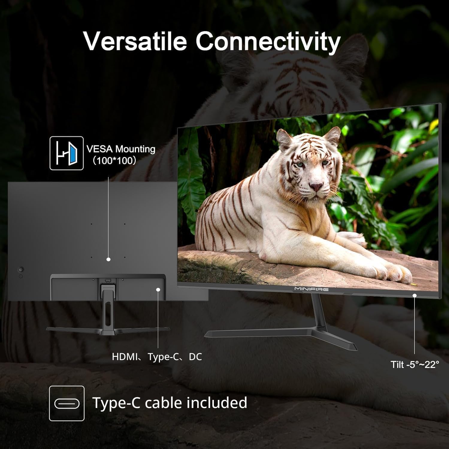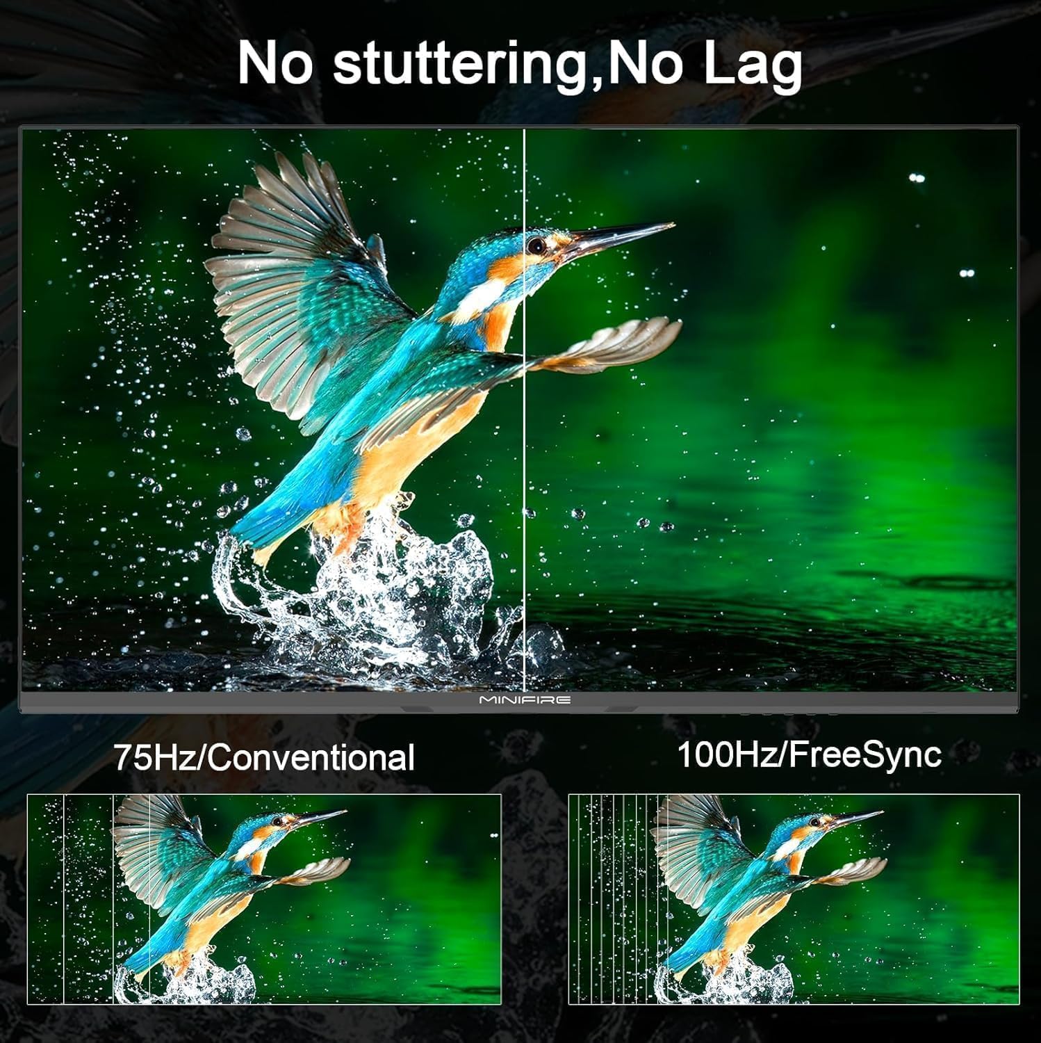 27-инчов монитор Minifire, 100 Hz, Anti-Flicker, Full HD, 1080p монитор за компютър с HDMI VGA портове (включен HDMI кабел MF27X3AL)