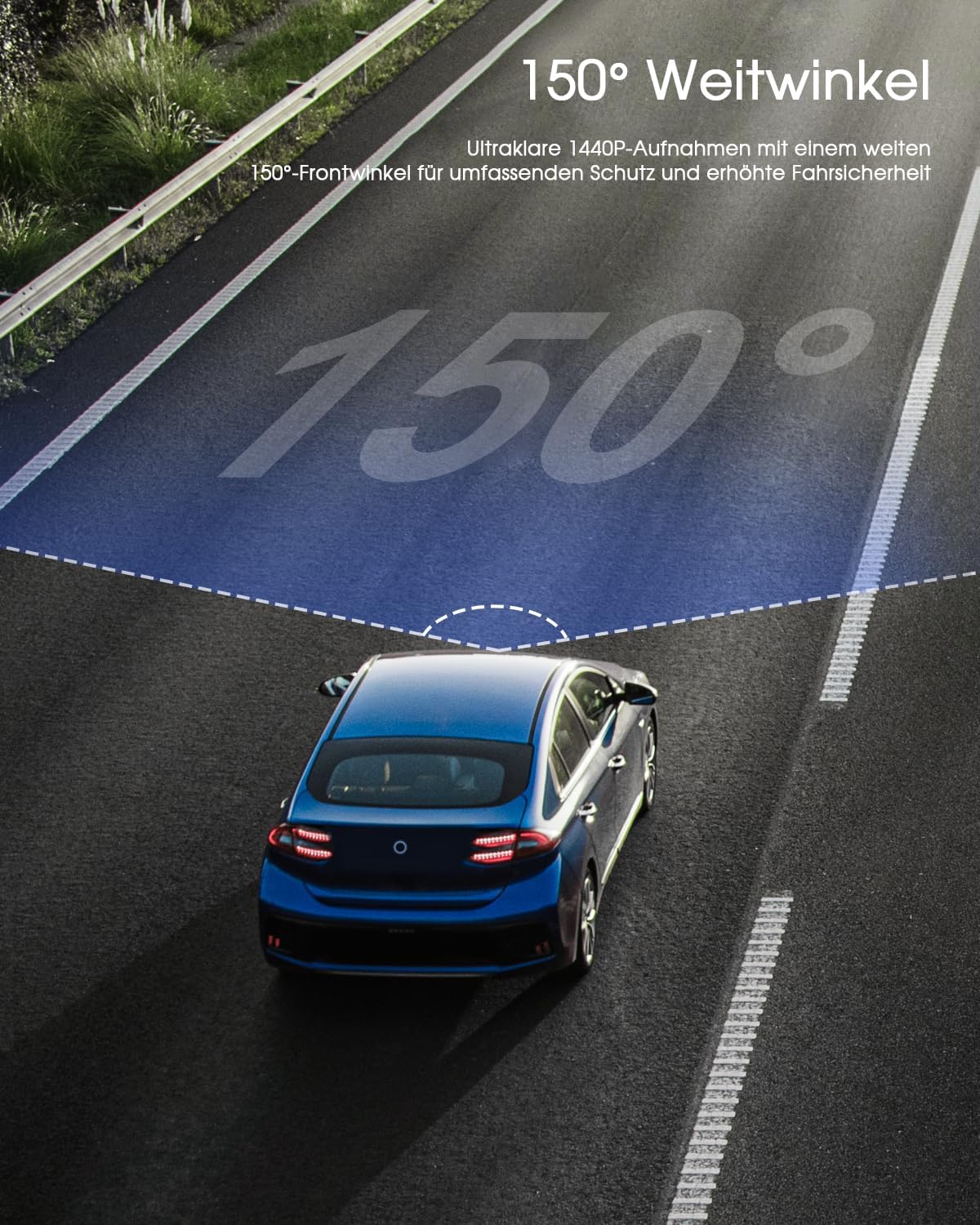 • Истинска 2K резолюция и широк 150° преден изглед: Тази безжична автомобилна видеокамера предлага подобрена яснота за по-резки записи и по-добра видимост на важни елементи като регистрационни номера и пътни знаци. С широкоъгълен обектив от 150° можете да заснемете цялостен изглед на пътя, като ефективно минимизирате слепите зони и осигурявате пълен запис на заобикалящата ви среда по време на шофиране.
