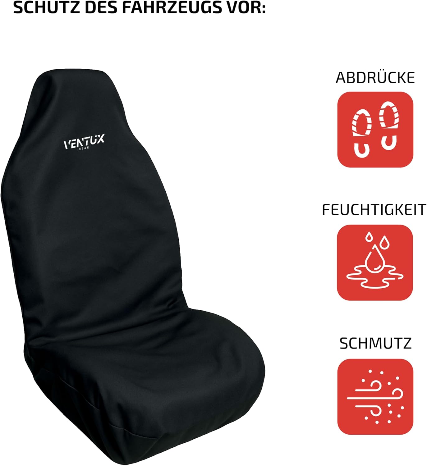 Водоустойчивият калъф за автомобилна седалка Ventux Gear предлага надеждна защита за шофьорската седалка на вашия автомобил, предотвратявайки повреди от течности, влага, масло, замърсявания и износване. Благодарение на издръжливия си материал, той ефективно предпазва възглавниците на седалките от вдлъбнатини, влага и ежедневно замърсяване. Универсалният му размер от 132 x 54 см го прави съвместим с повечето автомобили, микробуси и SUV-ове. Калъфът може да се монтира и сваля за секунди, което го прави идеален за занаятчии, спортисти, ползващи гаража, собственици на домашни любимци и за ежедневна употреба. Необходим аксесоар за поддържане на чист и добре поддържан интериор на вашия автомобил.