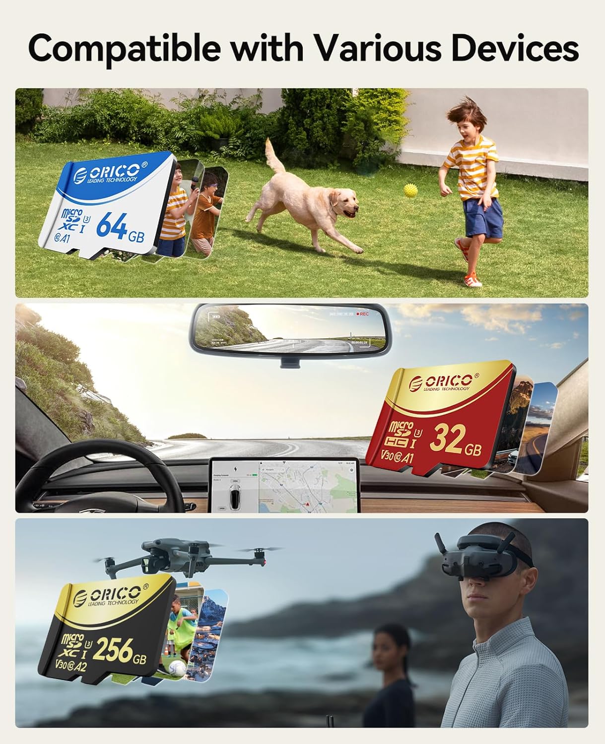 3 броя ORICO F3 32GB microSDXC UHS-I карти памет, 100MB/s, 4K UHD запис, U3, Class10, V30, A1, Micro SD за екшън камера, видеорегистратор, TF карта
