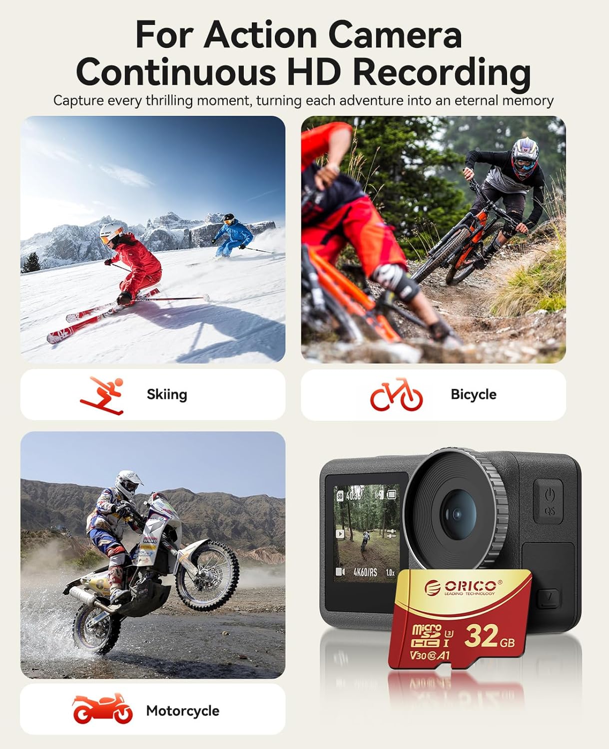• ИДЕАЛНА ЗА ПРИКЛЮЧЕНСКИ СПОРТОВЕ Нашата Micro SD карта е специално разработена за екшън камери, което я прави идеална за заснемане на моменти с високо натоварване по време на дейности като ски, спускане с колело и колоездене.