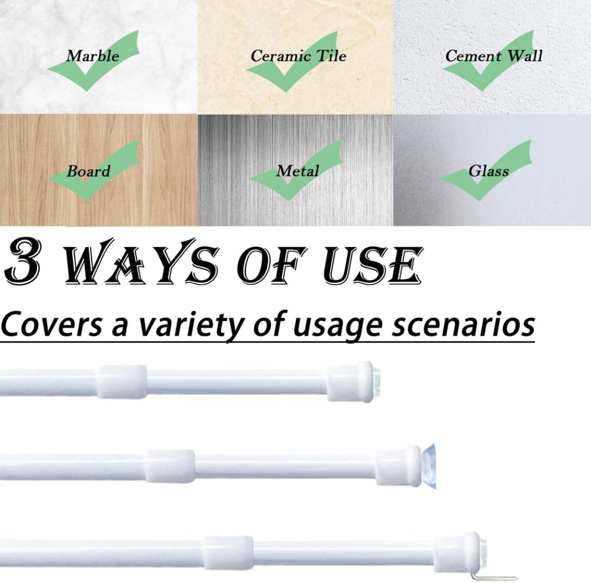 • Лесен за монтаж: Безстепенно регулируема дължина между 40-60 см и 7,6 мм/10 мм в диаметър. Не са необходими инструменти, винтове, лепило или отвори, просто регулирайте дължината, за да се закрепи между две стени. Подходящ за много тесни ситуации, можете да го направите сами.
