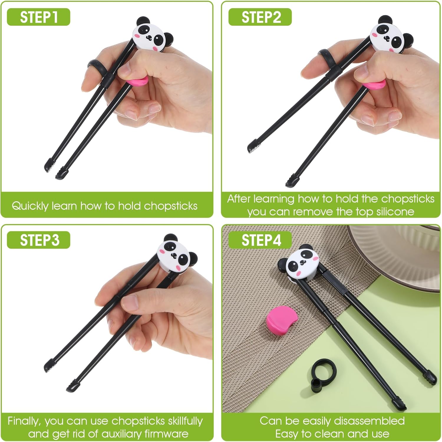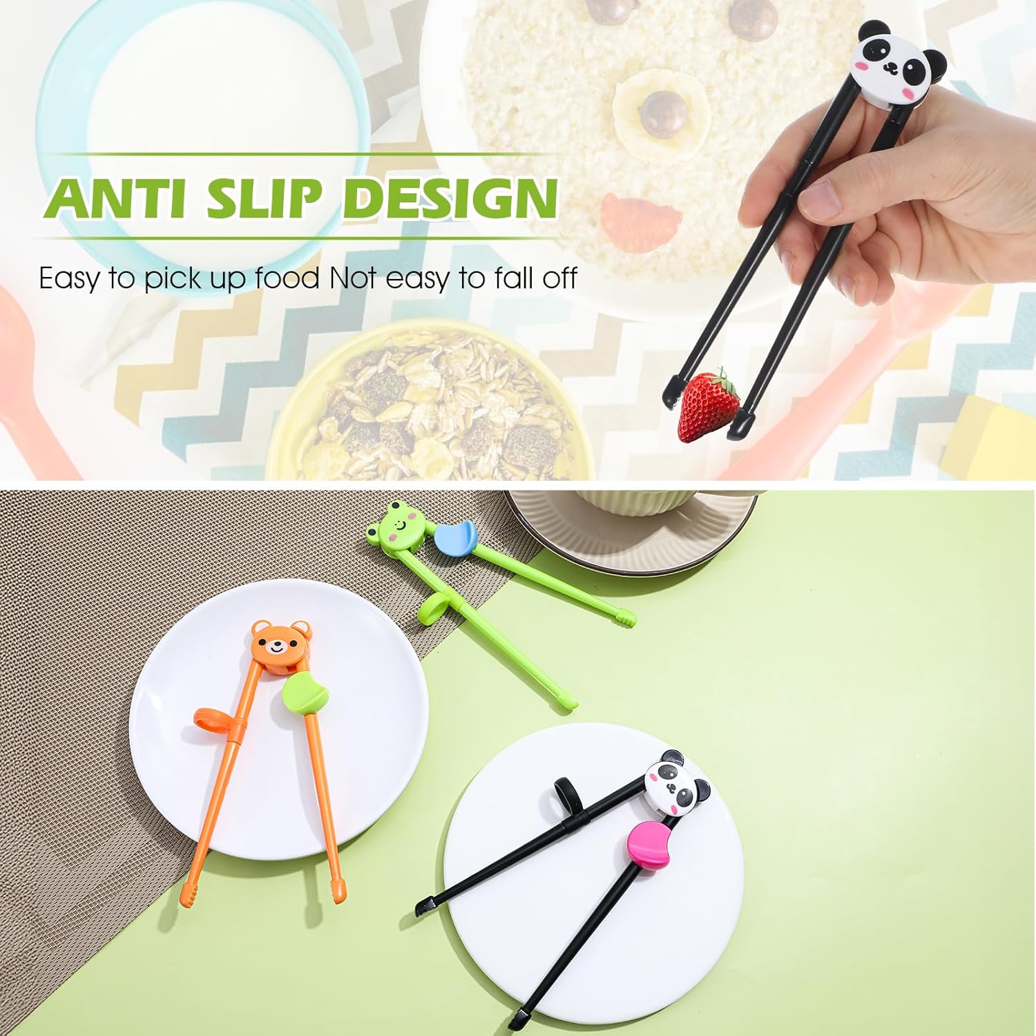 2. Сладките клечки за хранене с животни за деца имат силиконови дръжки, които помагат за коригиране на стойката на децата, когато държат клечки.