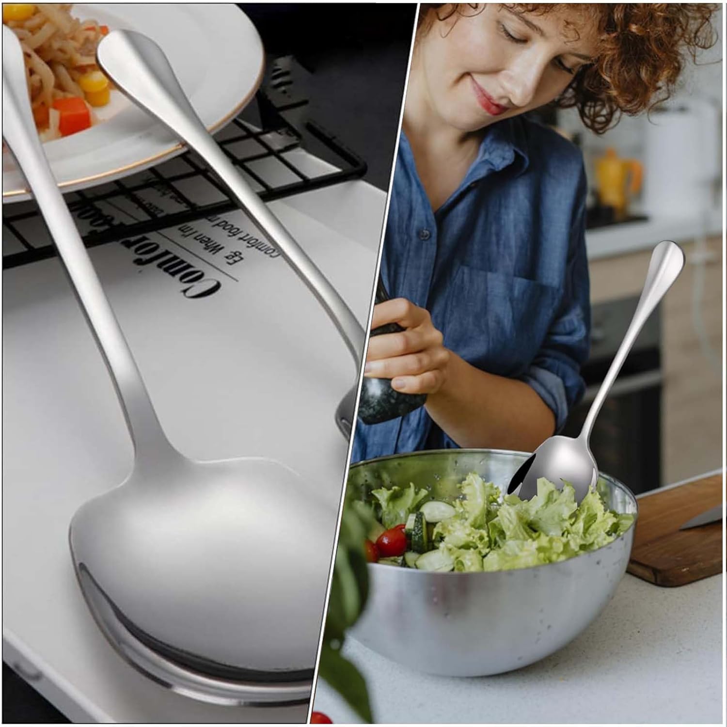 3 големи лъжици за сервиране, 25 см лъжици за сервиране, Лъжици за сервиране от неръждаема стомана, Големи лъжици, Прибори за сервиране, Лъжици за сервиране, Дълги лъжици от неръждаема стомана, Прибори за сервиране