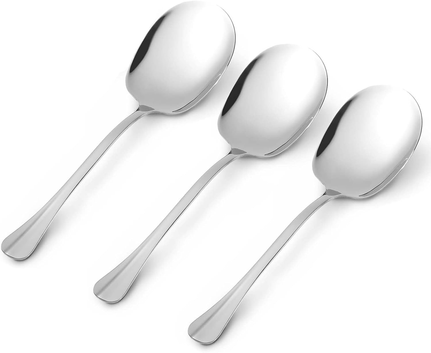 • 【Списък с опаковката】Ще получите 3 големи лъжици за сервиране, всяка с дължина 25 см, ширина 7,1 см и тегло 90 грама. Тези лъжици за сервиране от неръждаема стомана се отличават с удебелен дизайн и удобна дължина на дръжката.