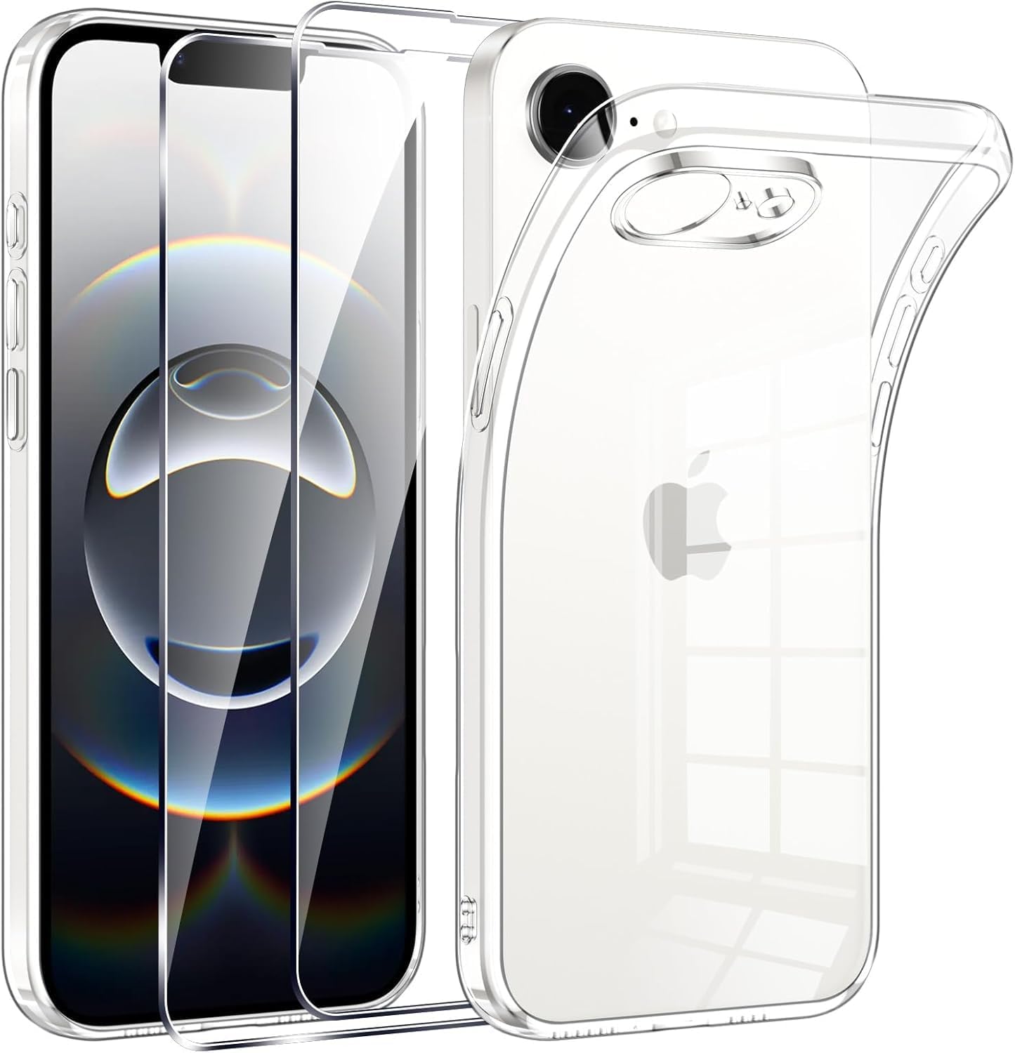 3-в-1 калъф за iPhone 16e [2 x стъклени протектора за екран] [1 x прозрачен калъф] ​​[немски материал] [ултра тънък] прозрачен калъф за мобилен телефон от закалено стъкло за Apple iPhone 16E