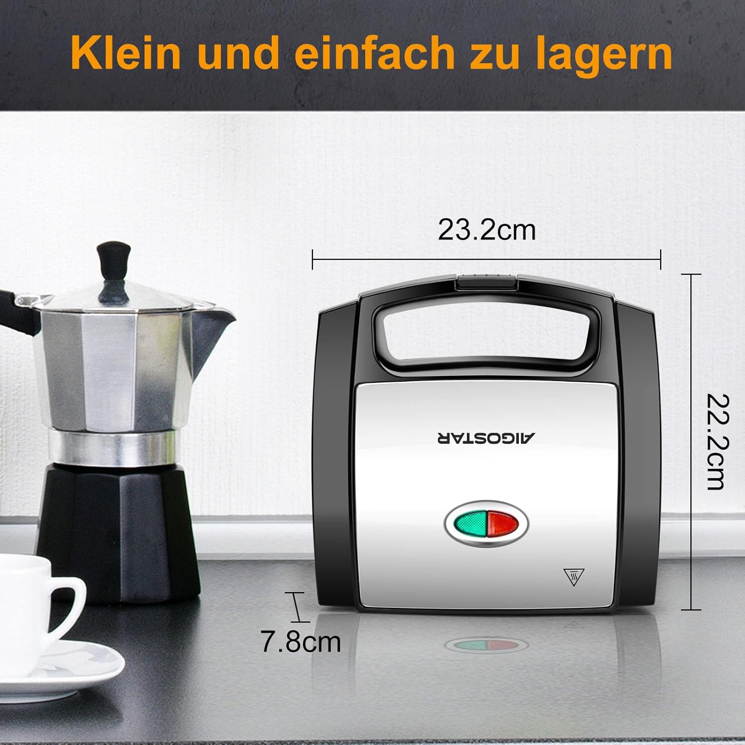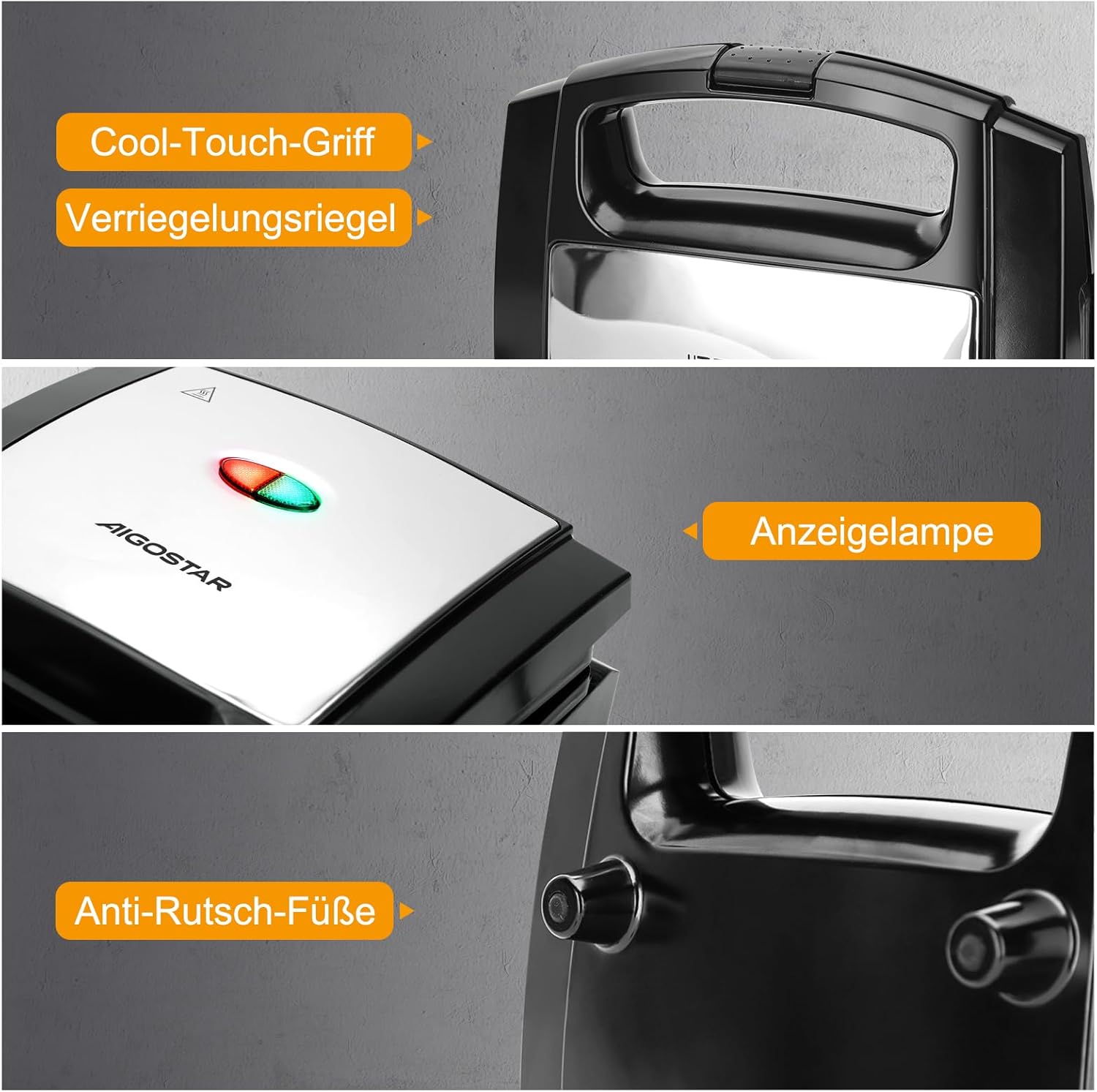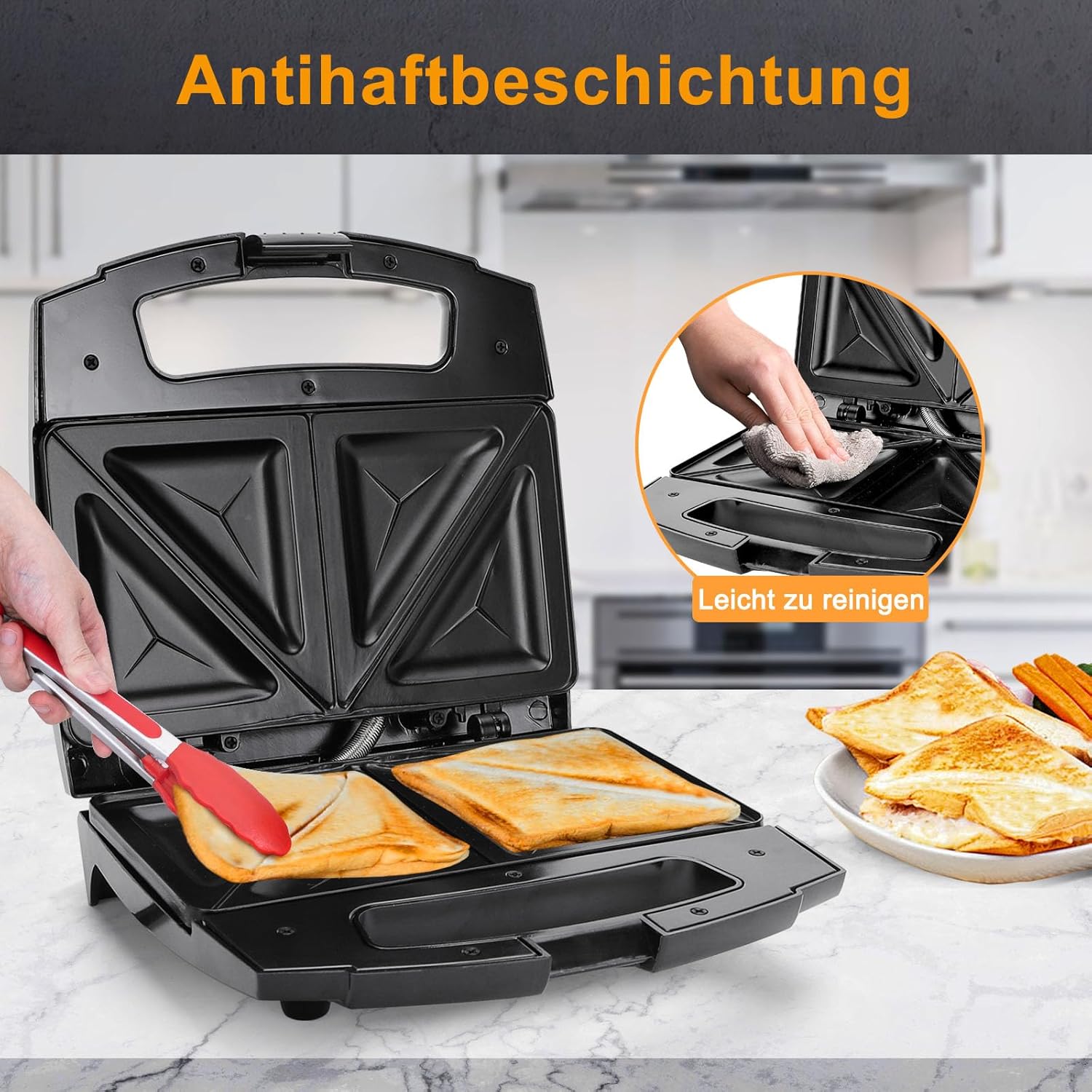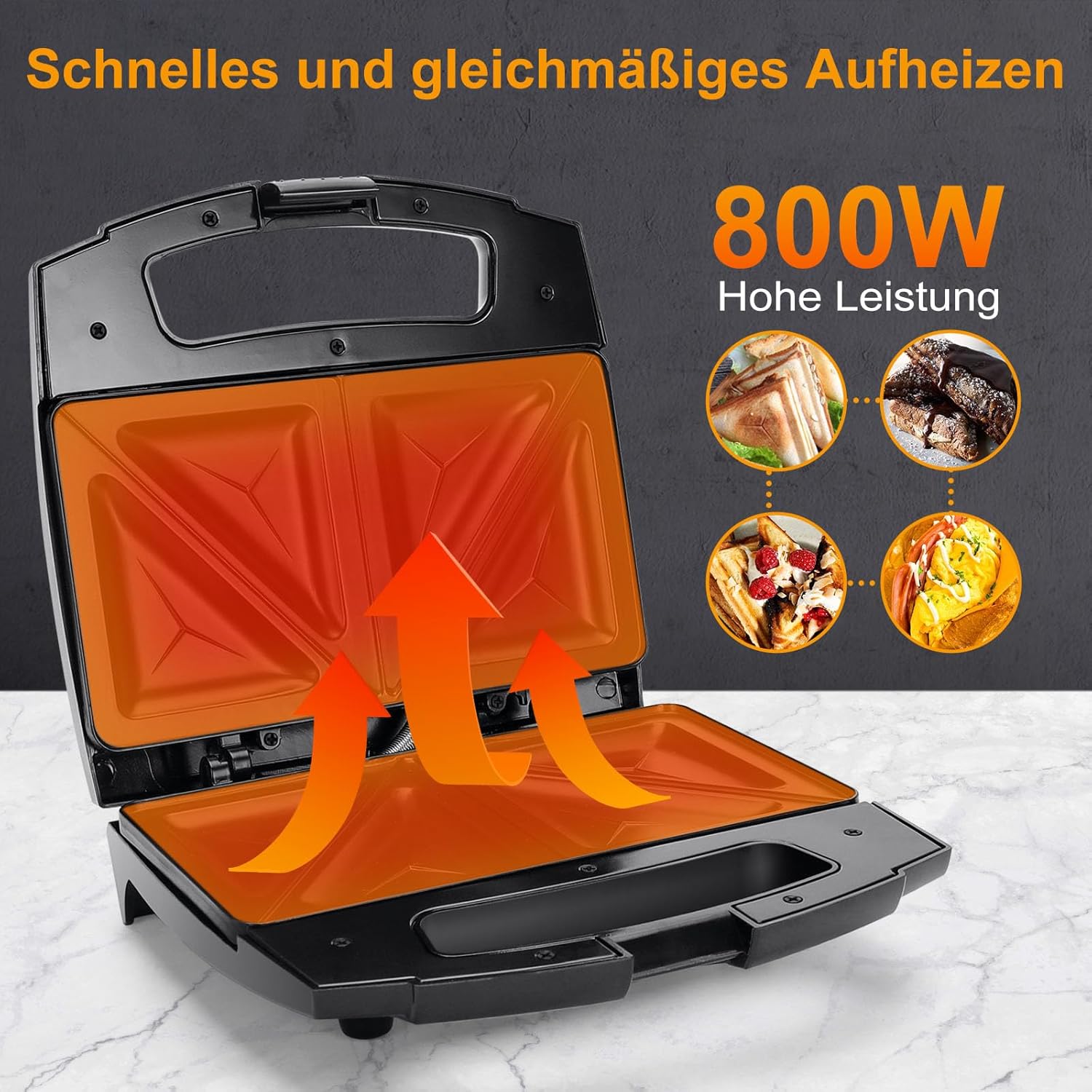 • Незалепваща плоча: Този уред за сандвичи е изработен от плоча с незалепващо покритие (4 сандвича / 8 триъгълни сандвич плочи). Той няма да повреди повърхността на храната и ще изглежда перфектно при изваждане на храната.