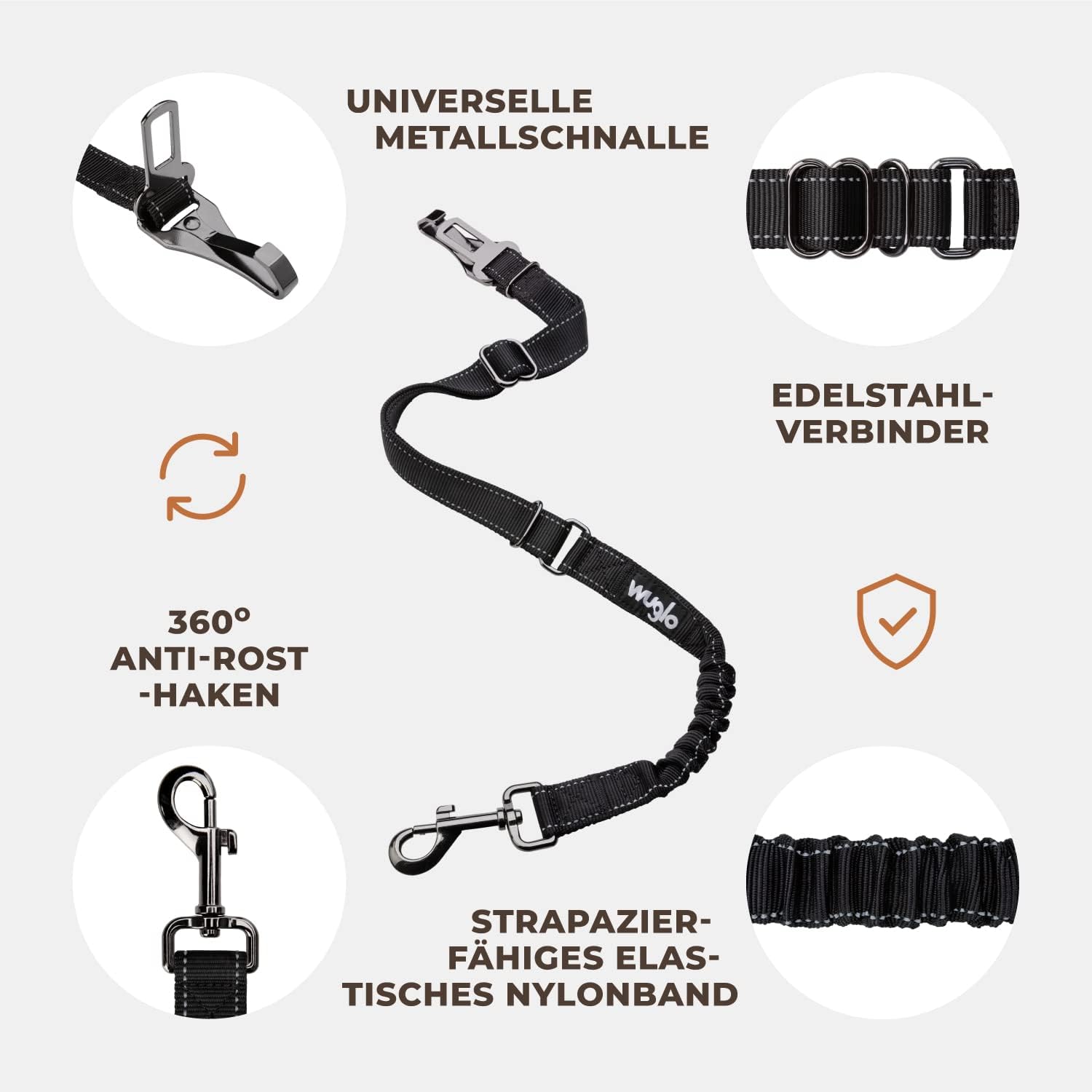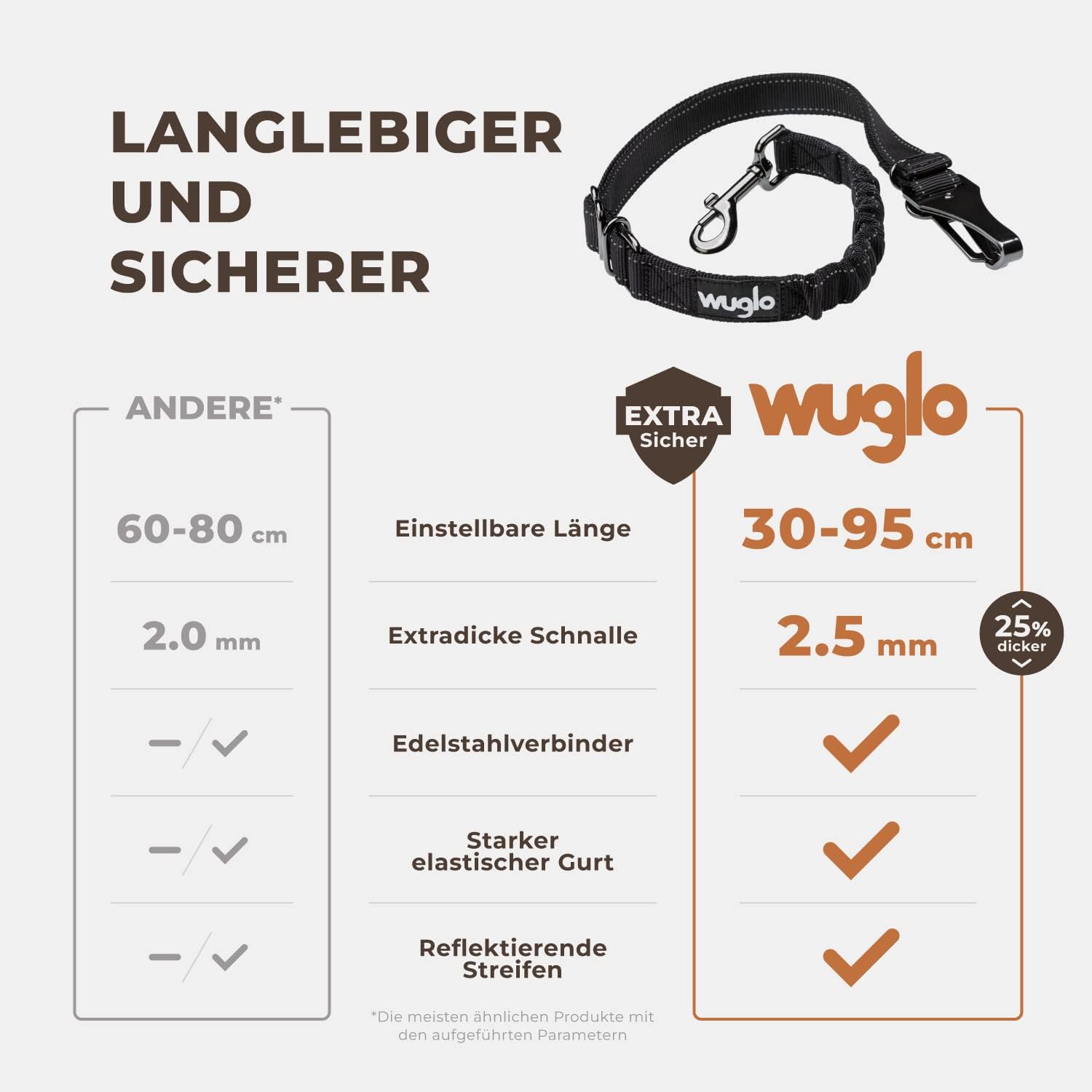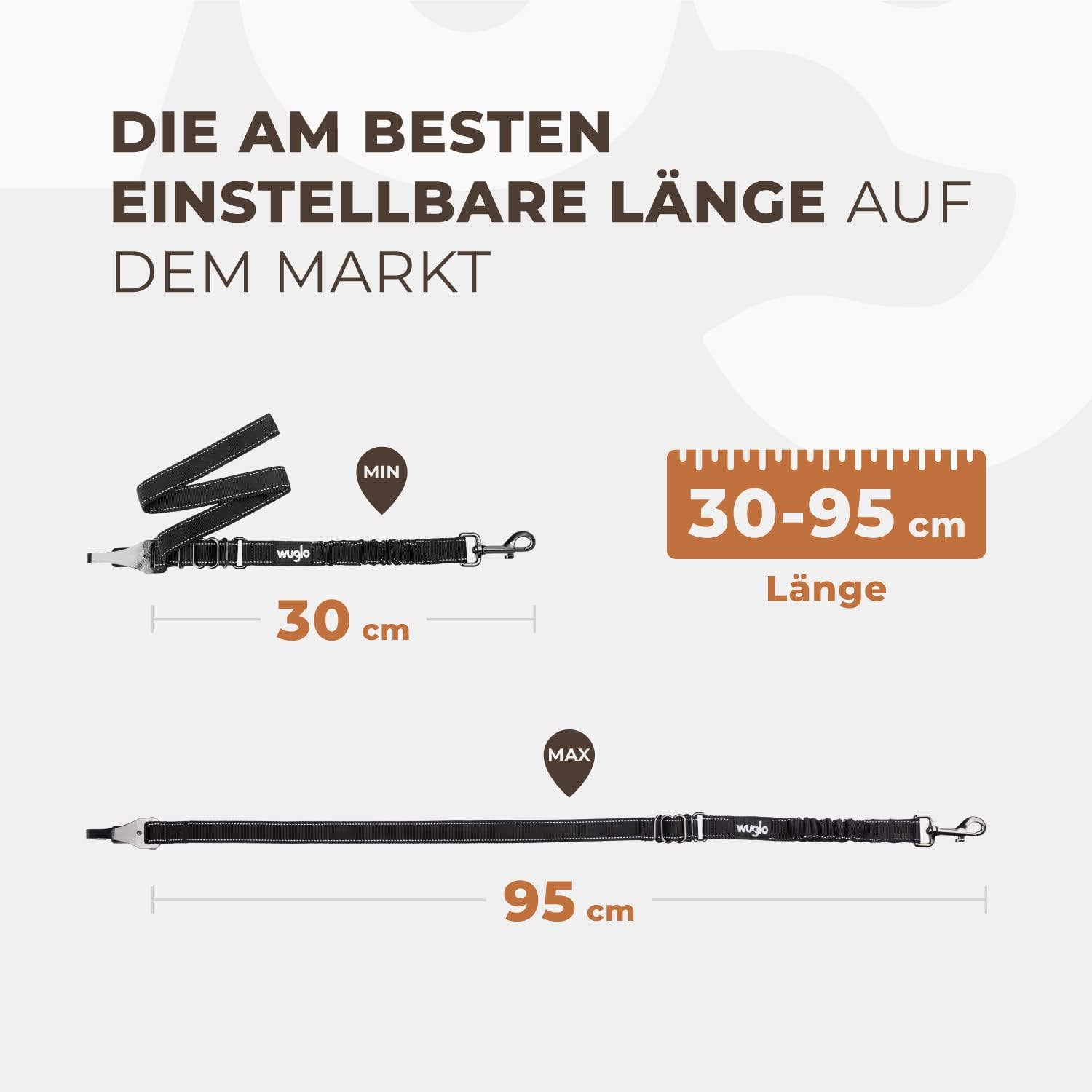 1. Регулирайте дължината на предпазния колан за кучета Wuglo, за да пасне на вашето куче, с диапазон от 30 до 90 см. 2. Закрепване за куче. 3. Свържете системата за кола с кука или катарама. 4. Осигурете сигурно прилягане и се уверете, че конекторите от неръждаема стомана и здравите шевове осигуряват безопасност по време на пътуване. Моля, обърнете внимание, че размерът може да се регулира съответно, тъй като този универсален костюм е подходящ за малки, средни и големи кучета.