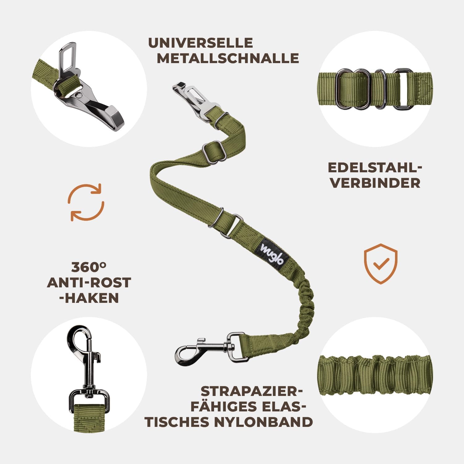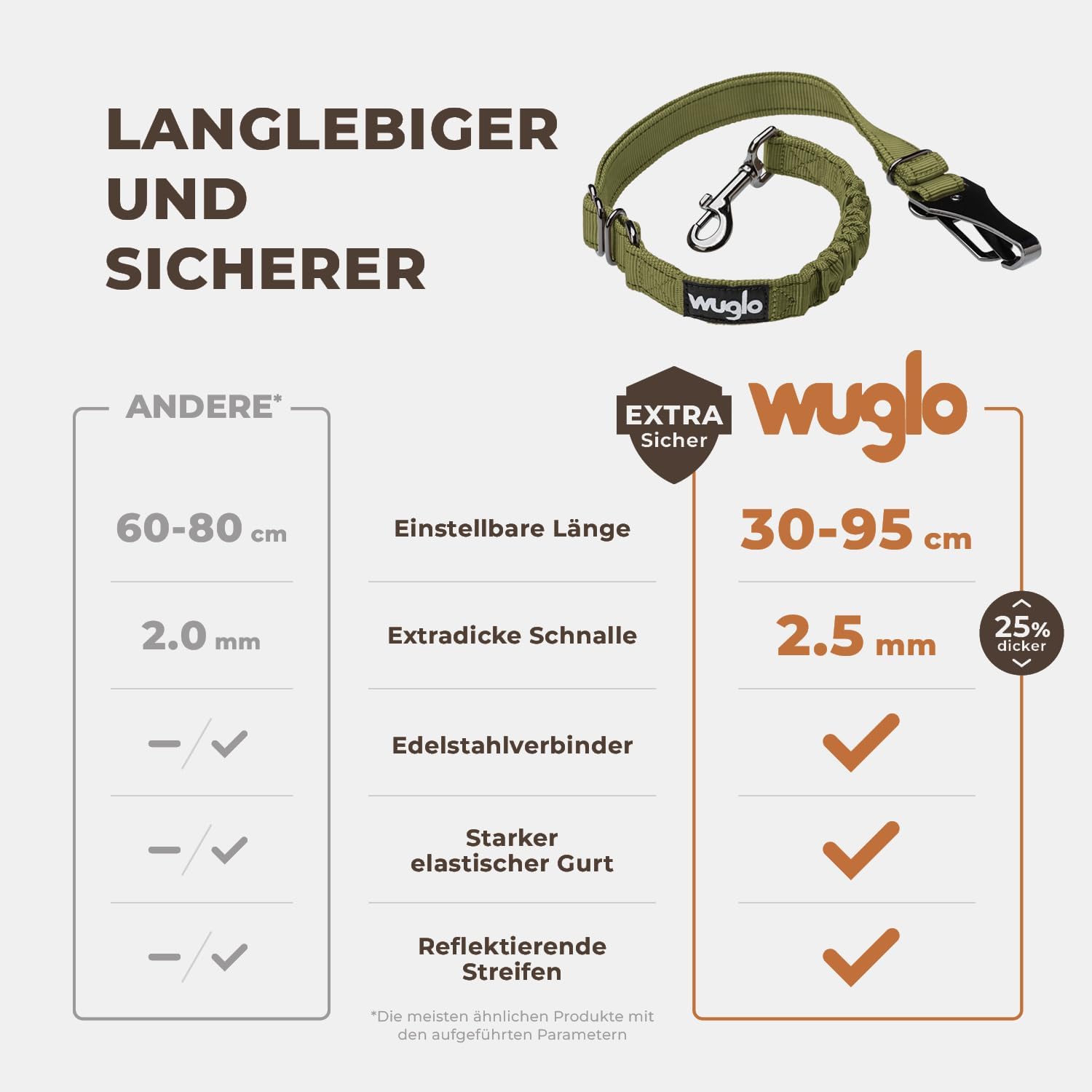 1. Регулирайте дължината на предпазния колан за кучета Wuglo, за да пасне на вашето куче, с диапазон от 30 до 90 см. 2. Закрепване за куче. 3. Свържете системата за кола с кука или катарама. 4. Осигурете сигурно прилягане и се уверете, че конекторите от неръждаема стомана и здравите шевове осигуряват безопасност по време на пътуване. Моля, обърнете внимание, че размерът може да се регулира съответно, тъй като този универсален костюм е подходящ за малки, средни и големи кучета.