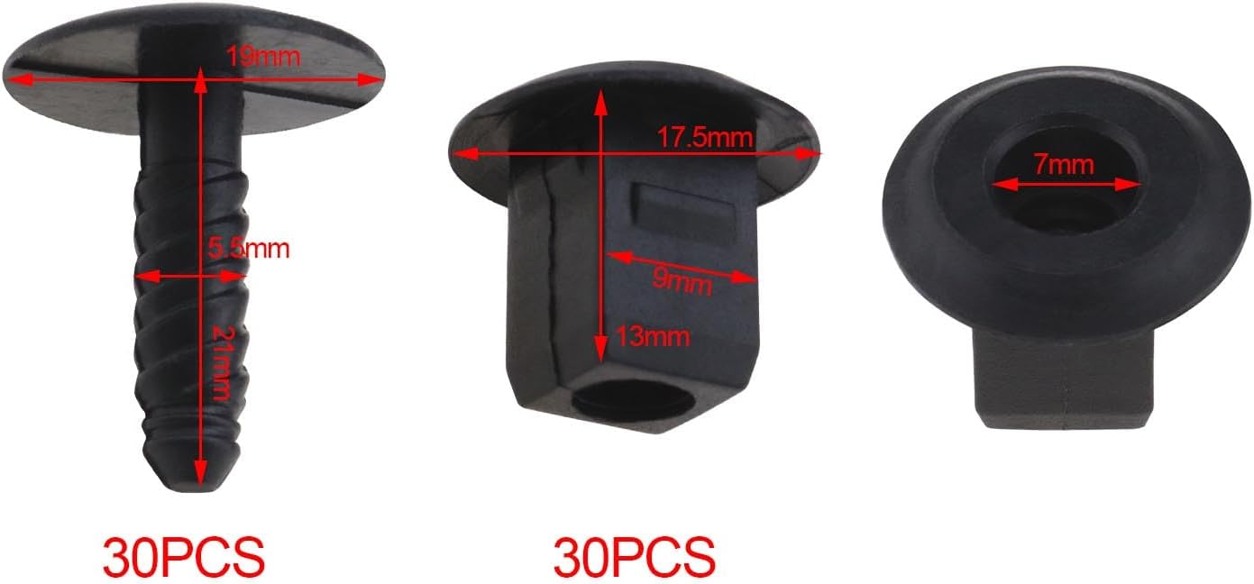 30 комплекта декоративни винтове за капак на батерията на фаровете на автомобила 7H0915450 за T5 пластмасови скоби за закрепване на панела за кацане/фаровете/батерията/капака на двигателя