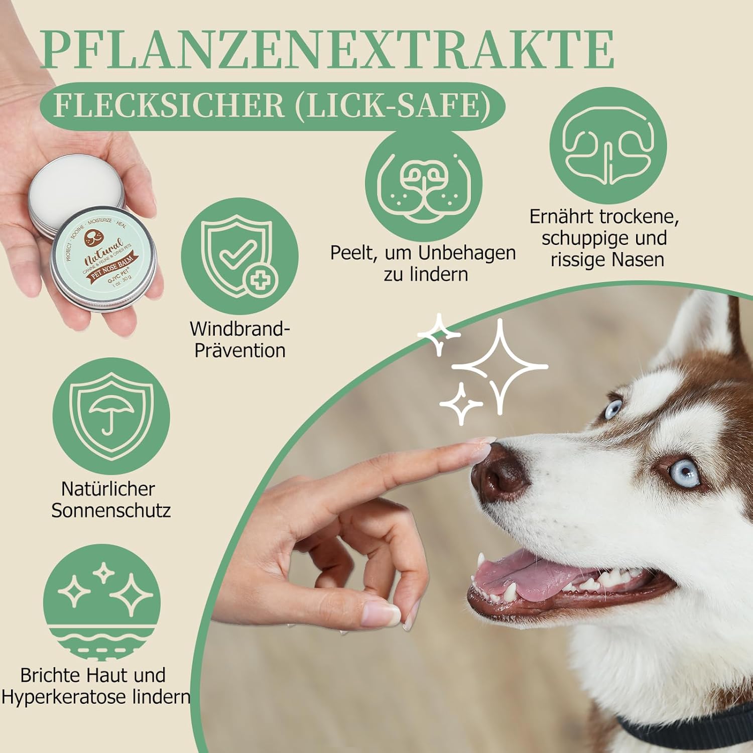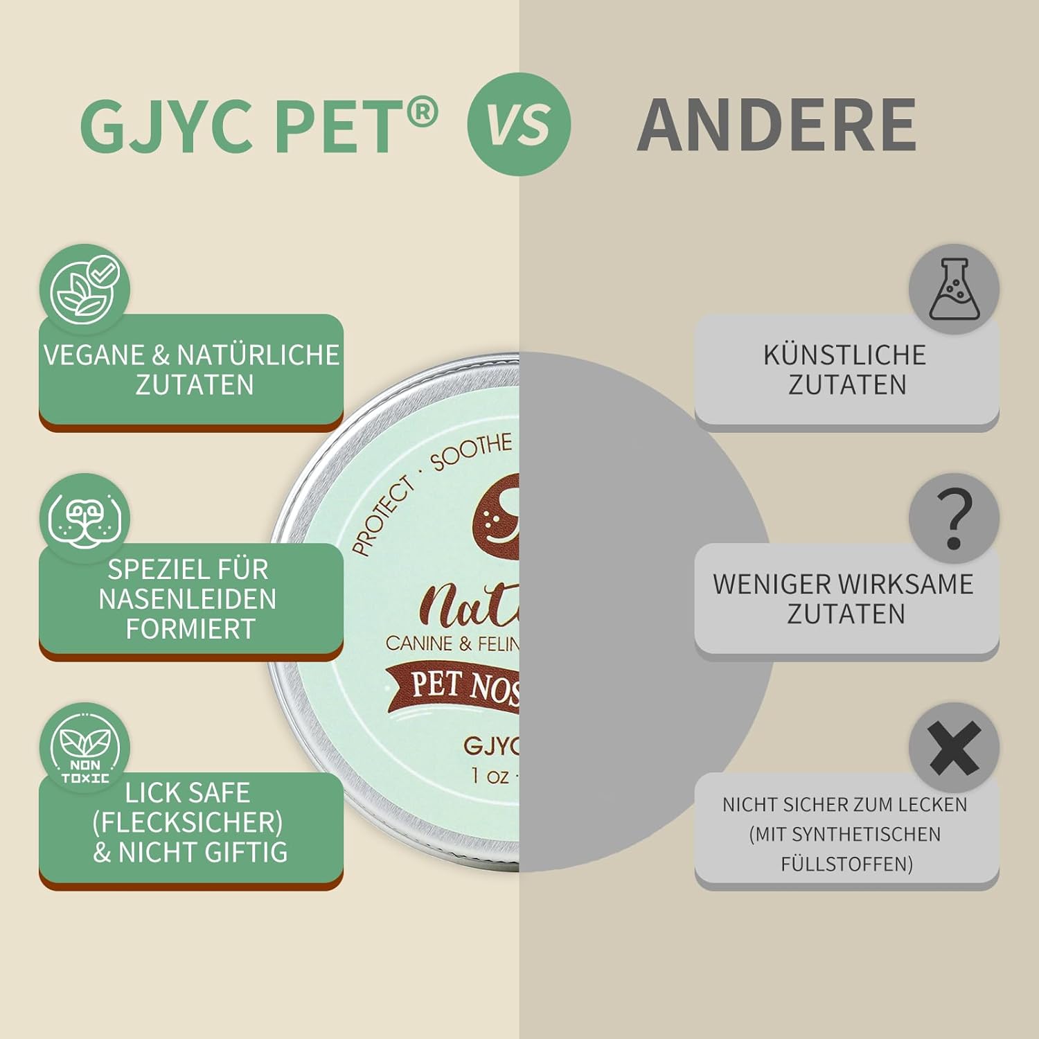 Направен с натурални съставки като масло от ший, лайка, кокосово масло, масло от гроздови семки, масло от жожоба и екстракт от розмарин, нашият балсам за нос е нежен и ефикасен за кожата на вашия домашен любимец.