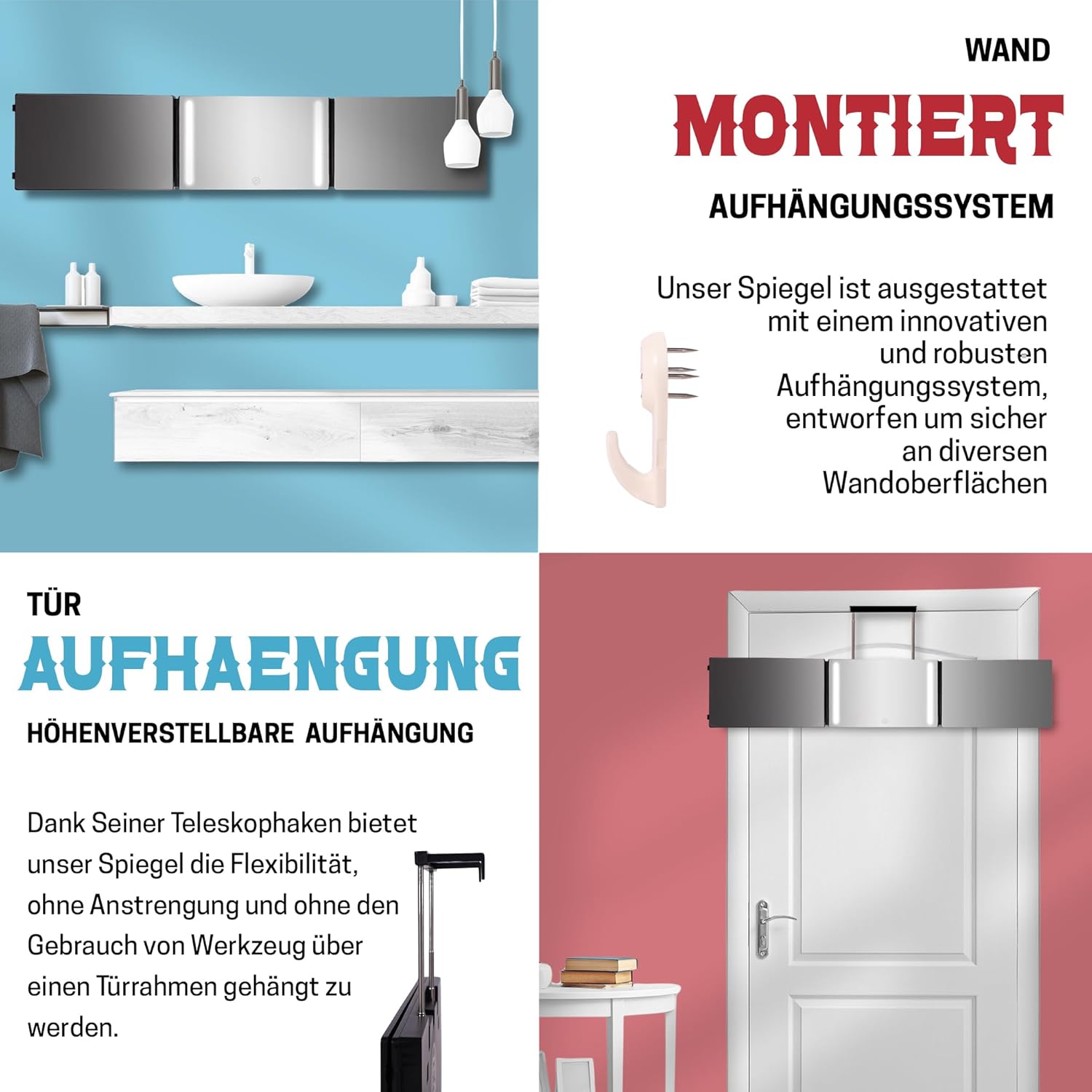 • 【РЕГУЛИРУЕМИ КУКИЧКИ】: Здравите и регулируеми дръжки/кукички на нашето огледало за самостоятелно подстригване осигуряват перфектната височина, осигуряват ергономичен комфорт и улесняват безпроблемното самостоятелно стилизиране. Изберете идеалния ъгъл за безупречни резултати.