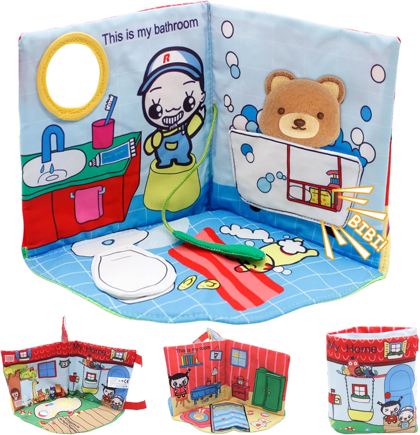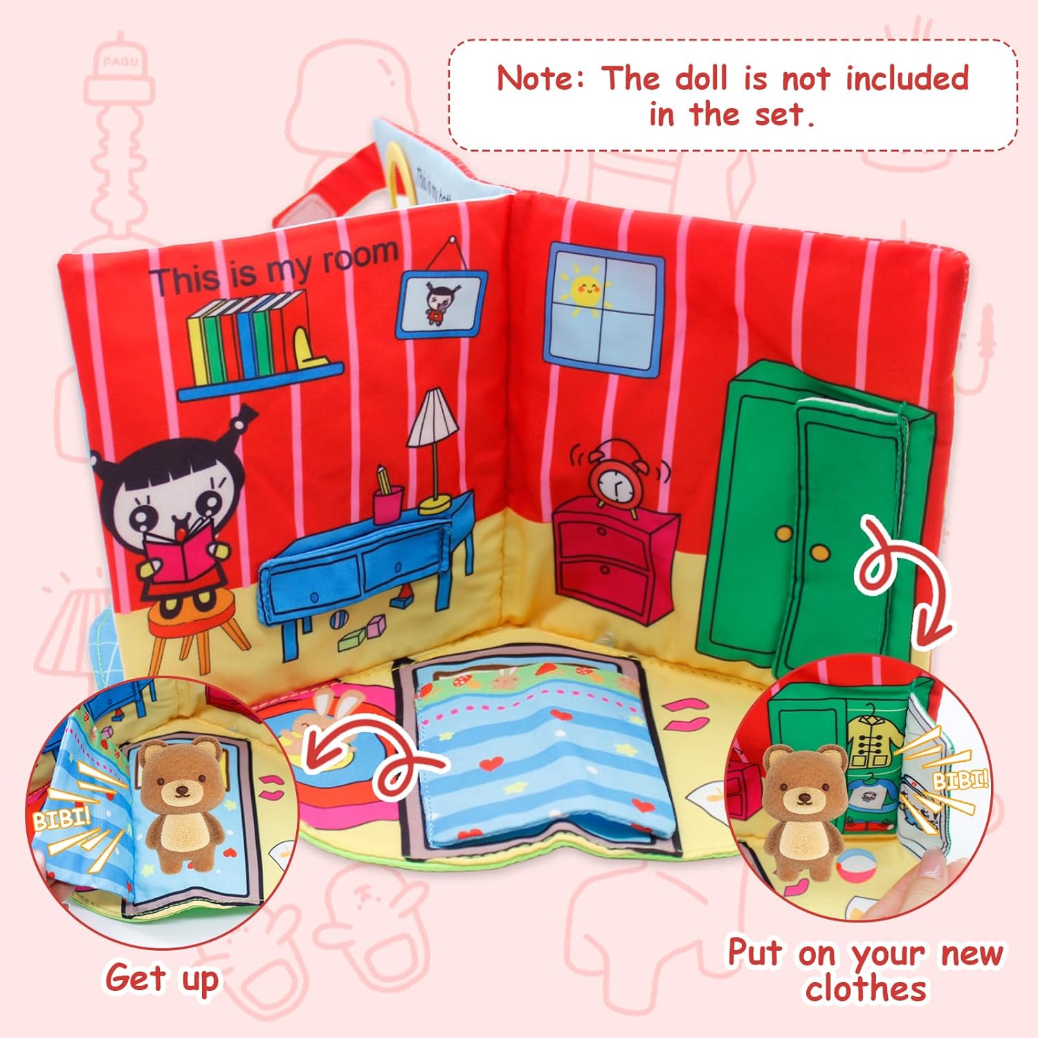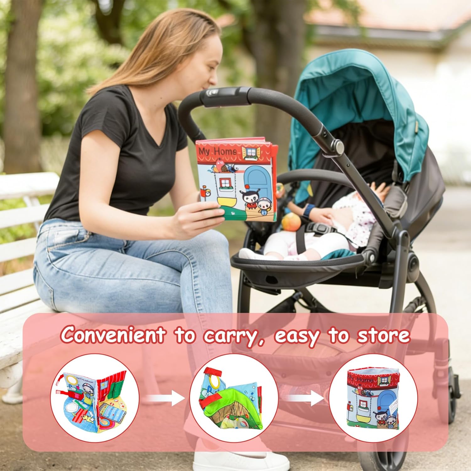 3D книжка за игра с текстил за деца над 1 година, мека книжка с хлъзгави елементи, книжка за докосване и усещане, играчка за бебета от 0, 3, 6, 12 месеца, подарък за момчета или момичета