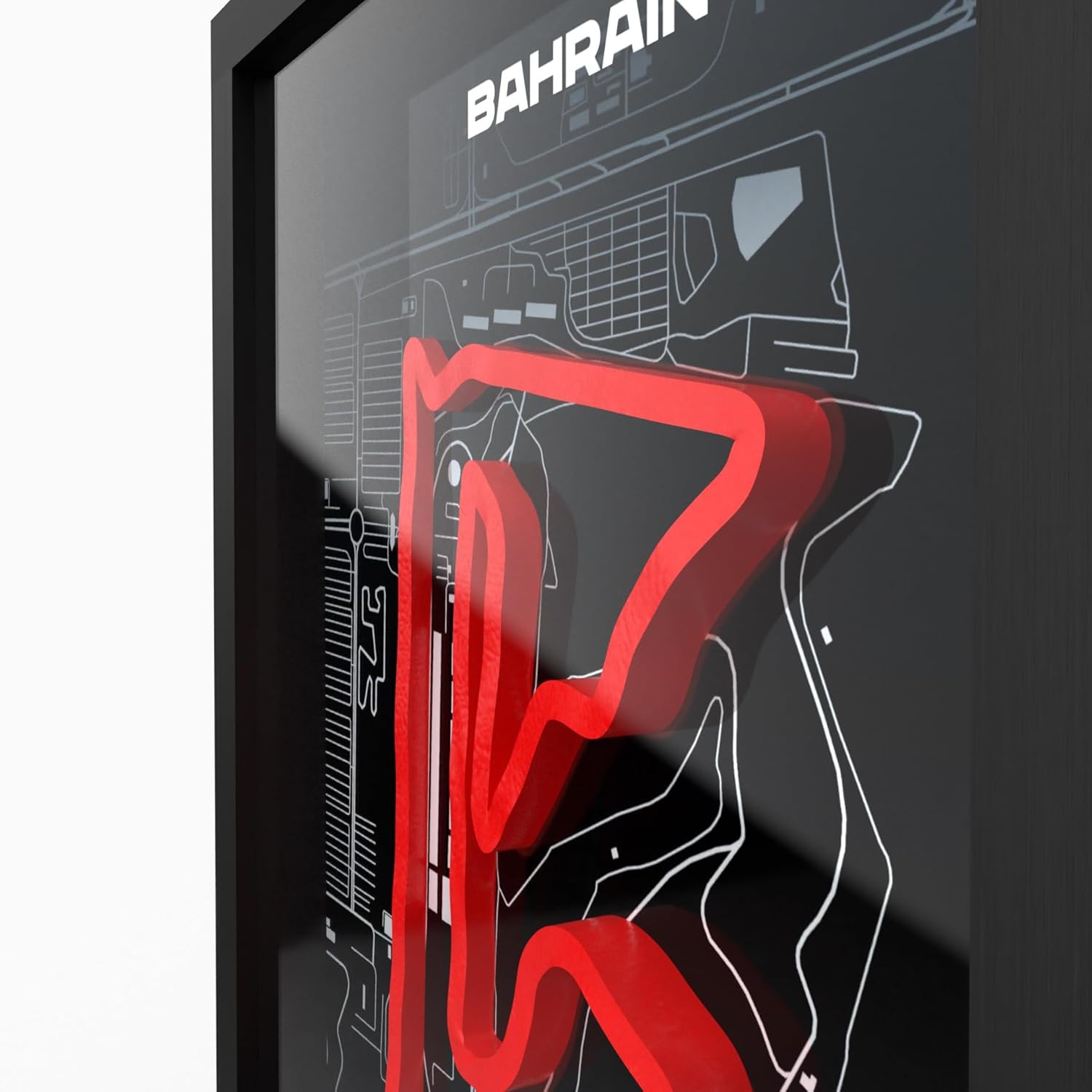 Изживейте състезателните писти в ново измерение. Благодарение на технологията за 3D печат, контурът на пистата стърчи от плаката и създава визуален ефект.