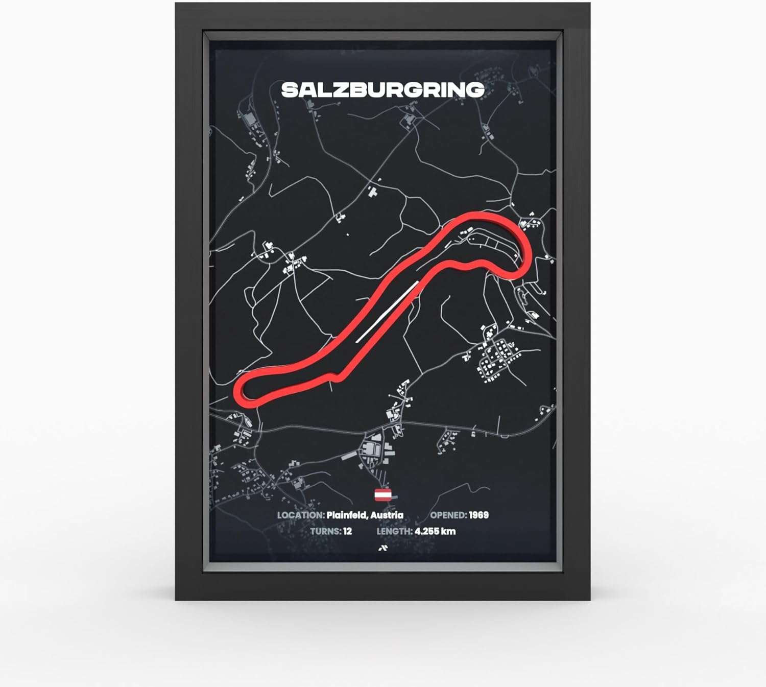 Изживейте състезателните писти в ново измерение. Благодарение на технологията за 3D печат, контурът на пистата стърчи от плаката и създава визуален ефект.
