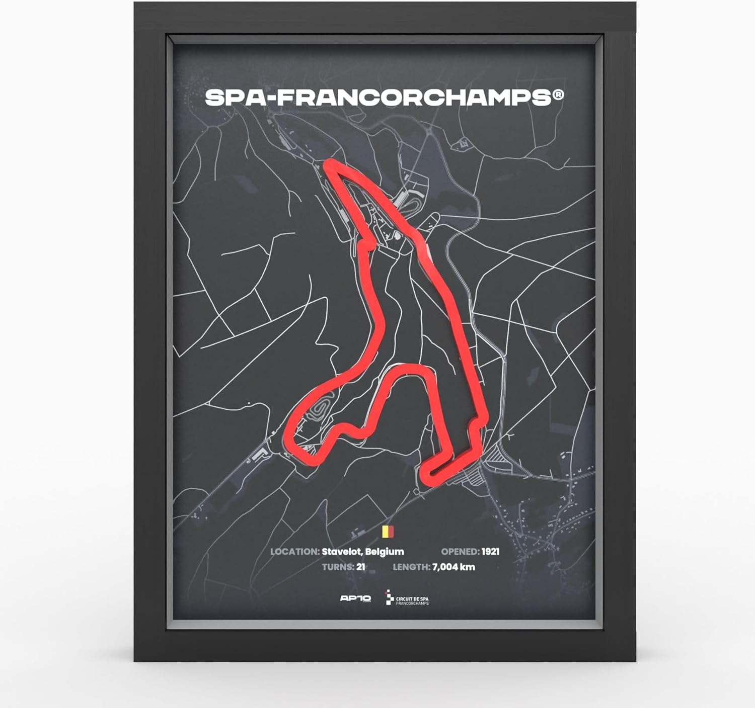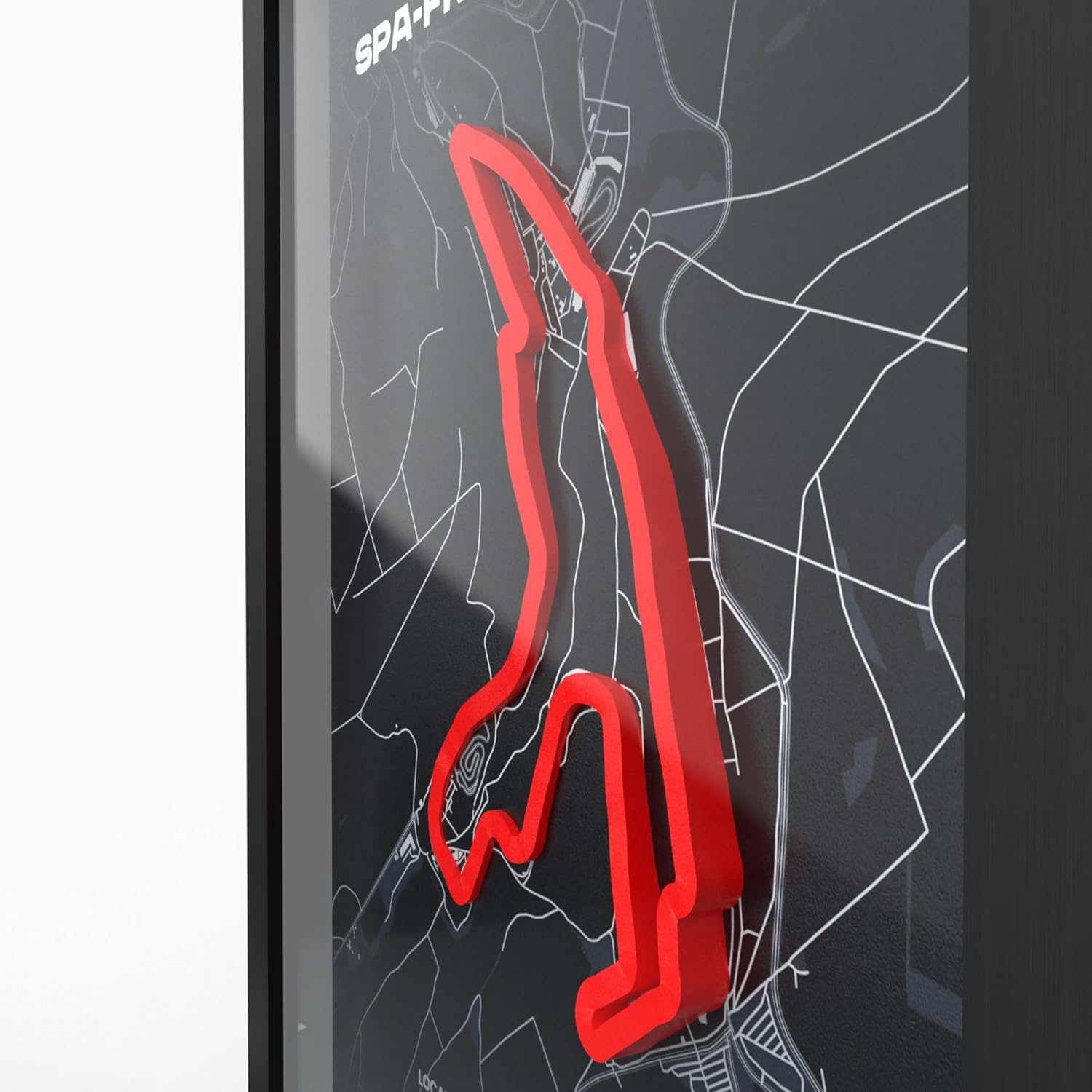 Изживейте състезателните писти в ново измерение. Благодарение на технологията за 3D печат, контурът на пистата стърчи от плаката и създава визуален ефект.