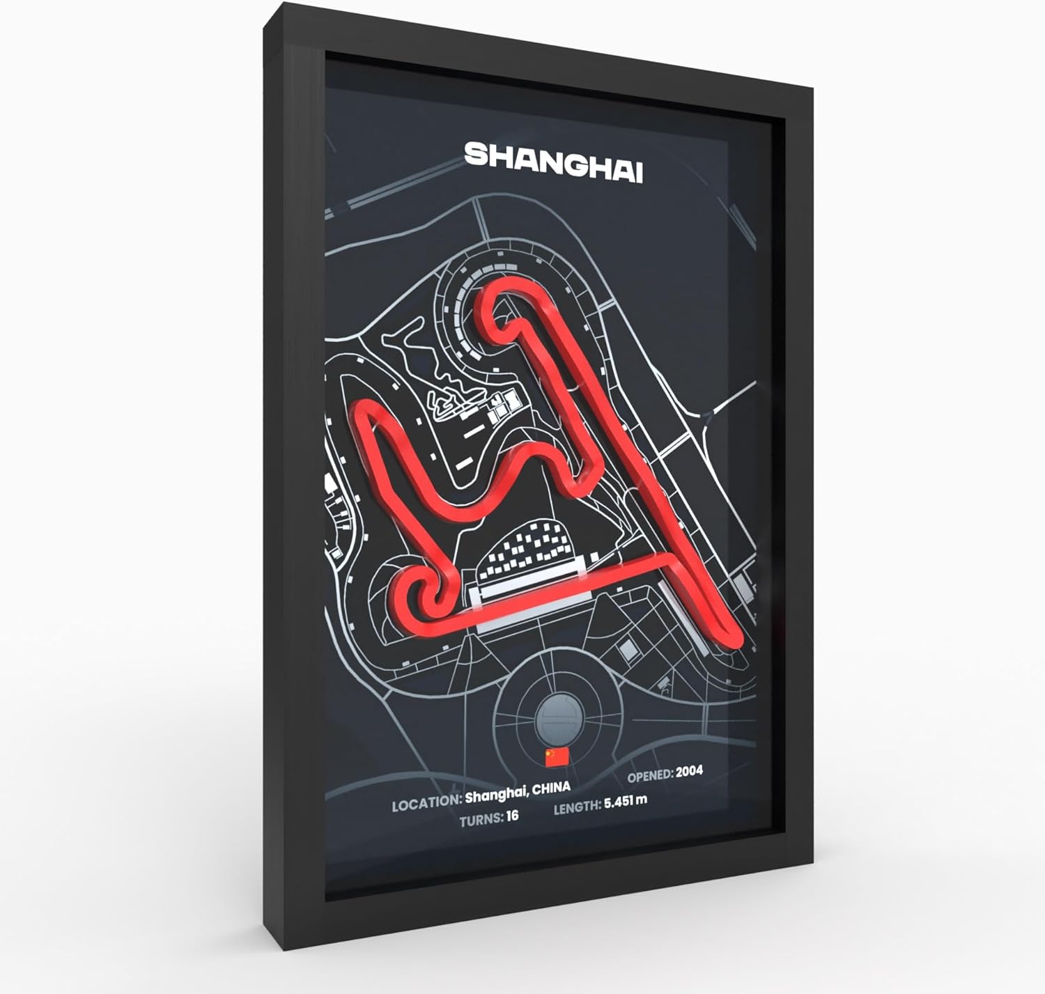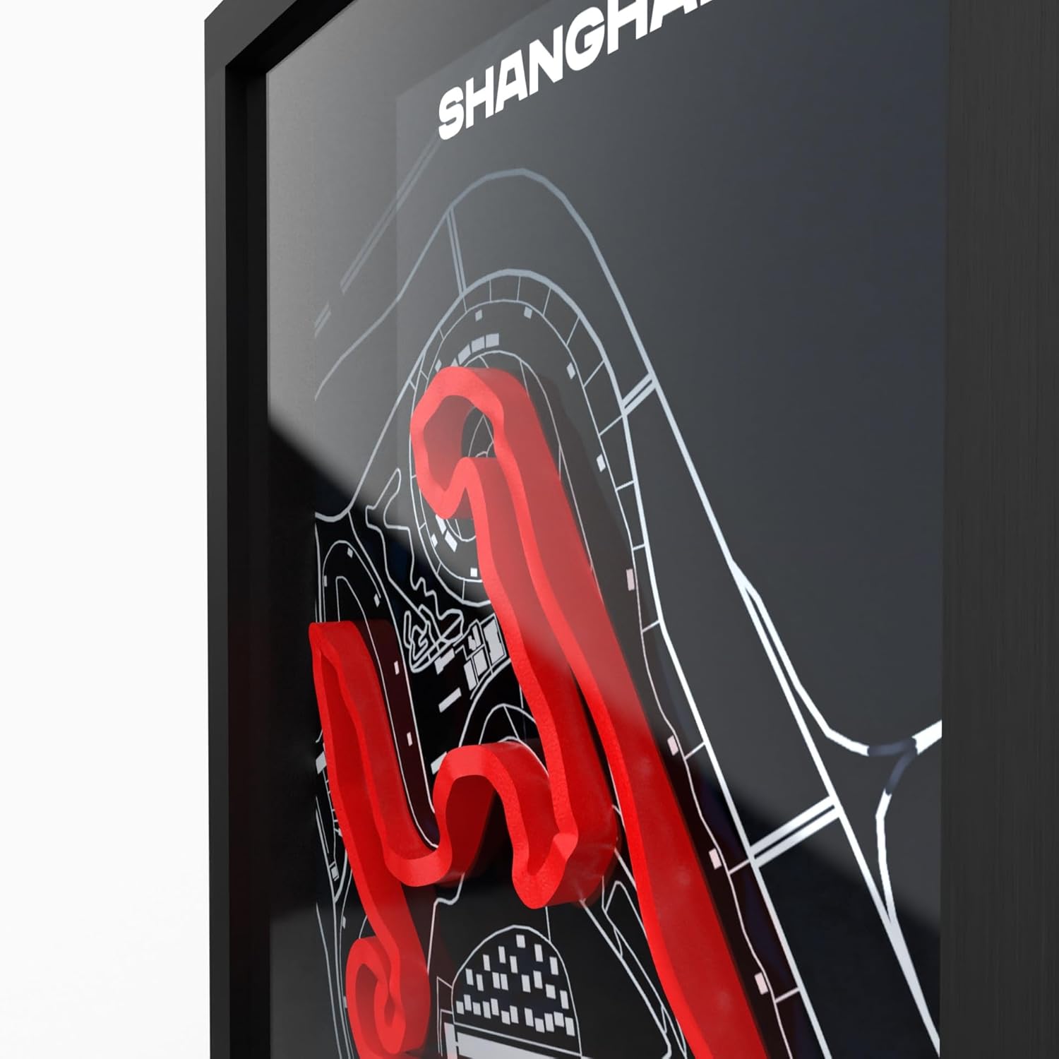 Изживейте състезателните писти в ново измерение. Благодарение на технологията за 3D печат, контурът на пистата стърчи от плаката и създава визуален ефект.