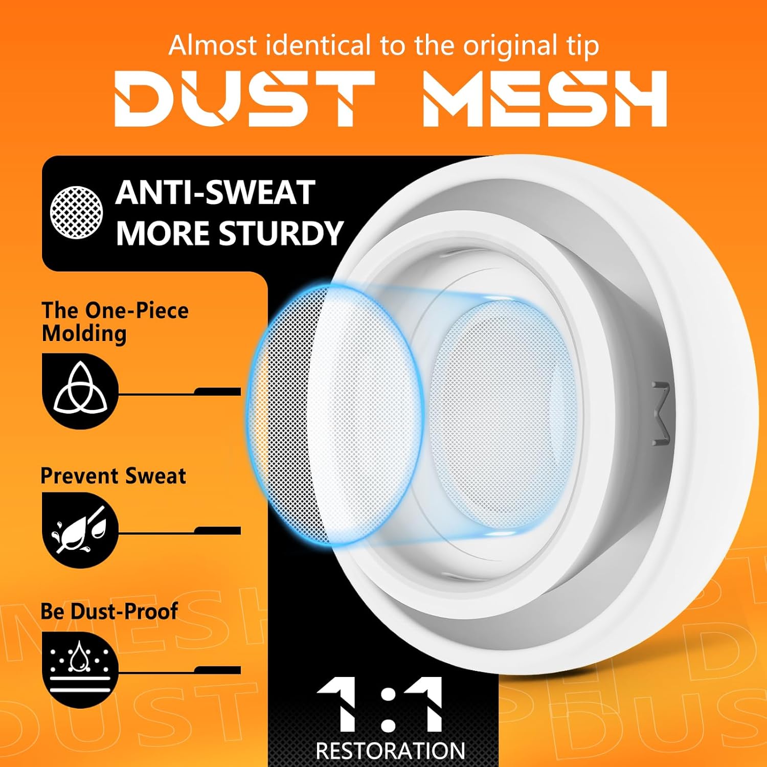 • Система за филтриране на частици: Всяка резервна слушалка е снабдена с двуслойна защитна мрежа, която блокира до 98% от праховите частици и влагата да не навлизат в слушалките, запазвайки яснотата на звука дори при продължителна употреба.