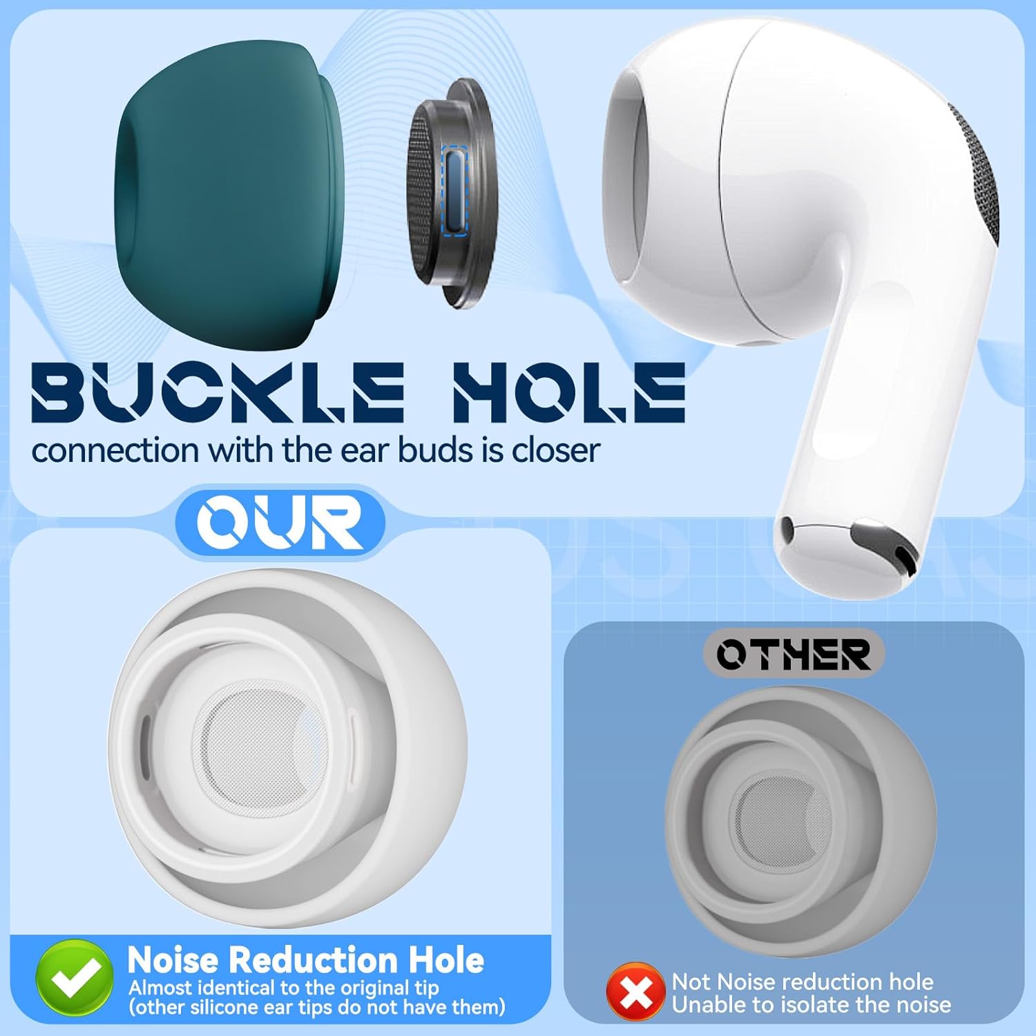 • ПОДОБРЕНА ШУМОИЗОЛАЦИЯ: Стратегически разположените акустични портове от двете страни (подобно на дизайна на първокласните слушалки) са добре съвместими с Airpod Pro, като минимизират околните смущения и осигуряват завладяващо аудио изживяване.
