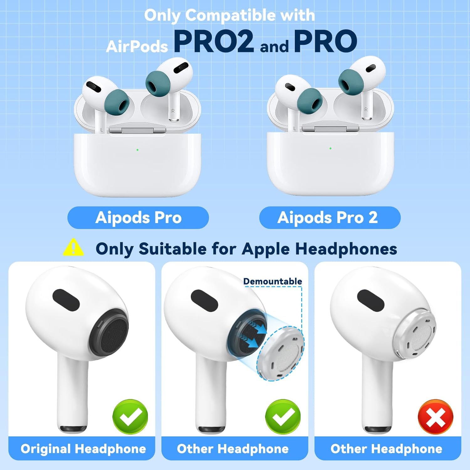 • ЗАБЕЛЕЖКА ЗА СЪВМЕСТИМОСТ: Лесни за инсталиране, съвместими с Apple Airpods Pro 1st/2nd и USB-C версии, само за оригинални AirPods Pro (не са съвместими с фалшиви Airpods pro) опции
