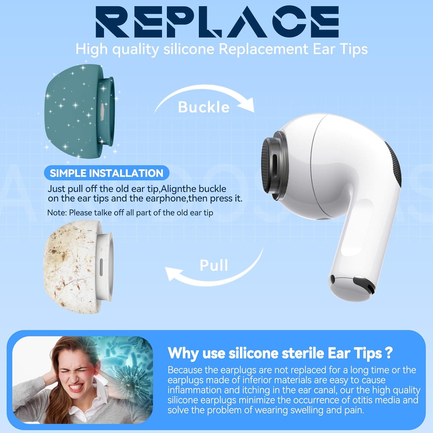 • УДОБЕН ДИЗАЙН: Мекият силикон в 4 размера (XS/S/M/L) осигурява леко прилягане (всяка резервна слушалка тежи колкото оригиналната) за комфорт по време на продължително слушане.