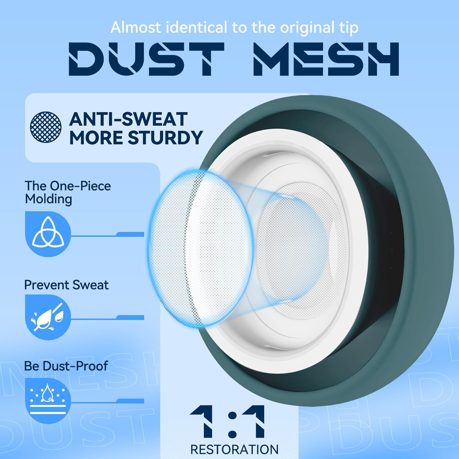 • Система за филтриране на частици: Всяка резервна слушалка е снабдена с двуслойна защитна мрежа, която блокира до 98% от праховите частици и влагата да не навлизат в слушалките, запазвайки яснотата на звука дори при продължителна употреба.