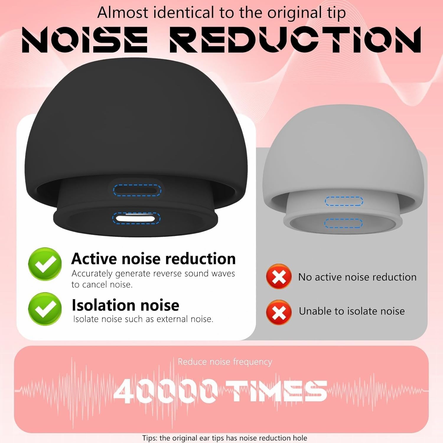 4 чифта резервни накрайници за уши за Airpods Pro 1/2 с отвор за намаляване на шума, силиконови тапи за уши за Airpods Pro с комплект за почистване и преносима кутия за съхранение, 4 размера (XS/S/M/L) черни