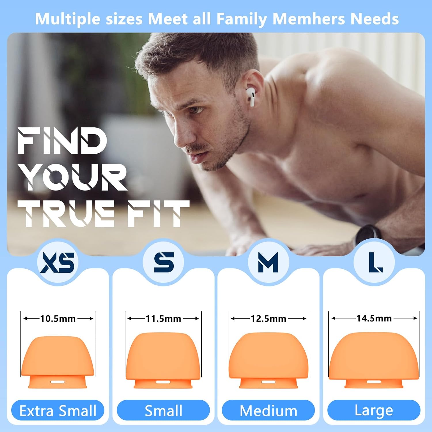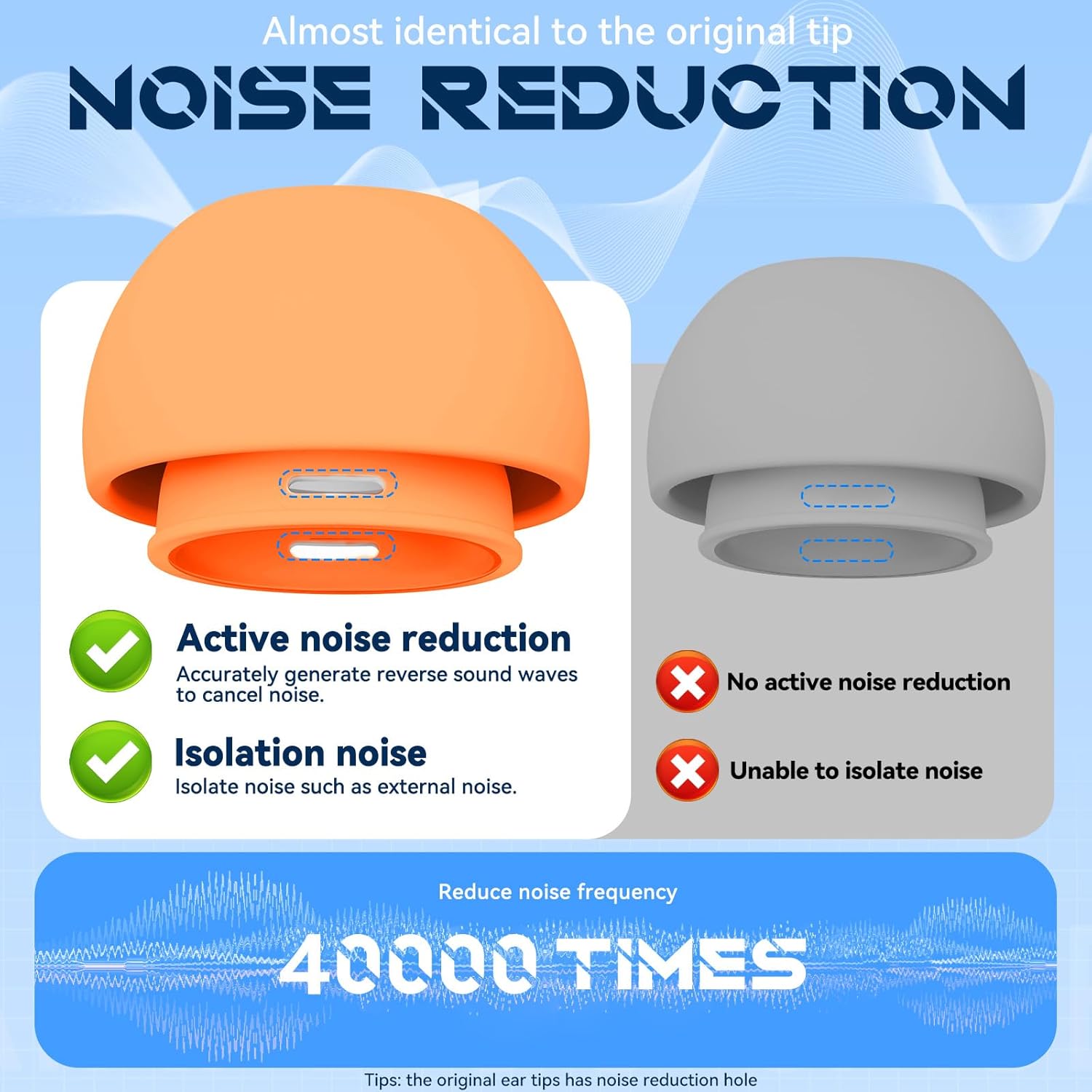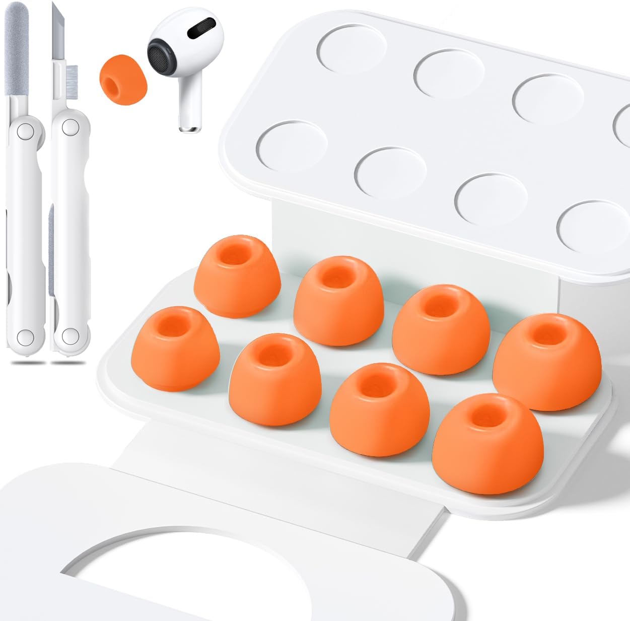 4 чифта резервни накрайници за уши за Airpods Pro 1/2 с отвор за намаляване на шума, силиконови тапи за уши за Airpods Pro с комплект за почистване и преносима кутия за съхранение, 4 размера (XS/S/M/L) оранжеви