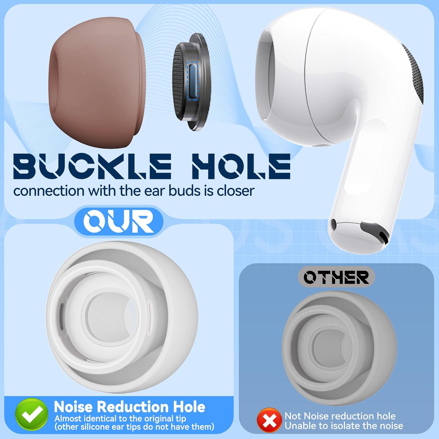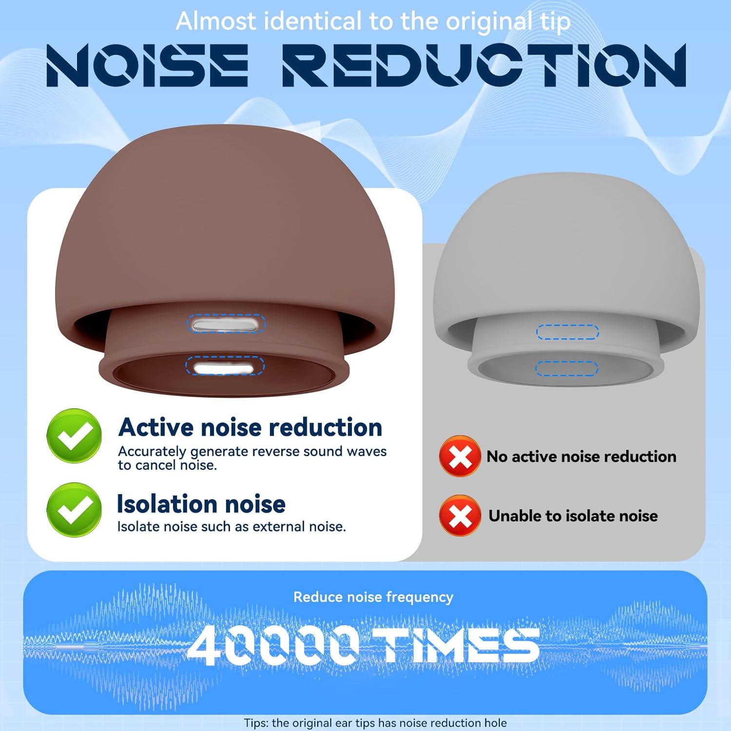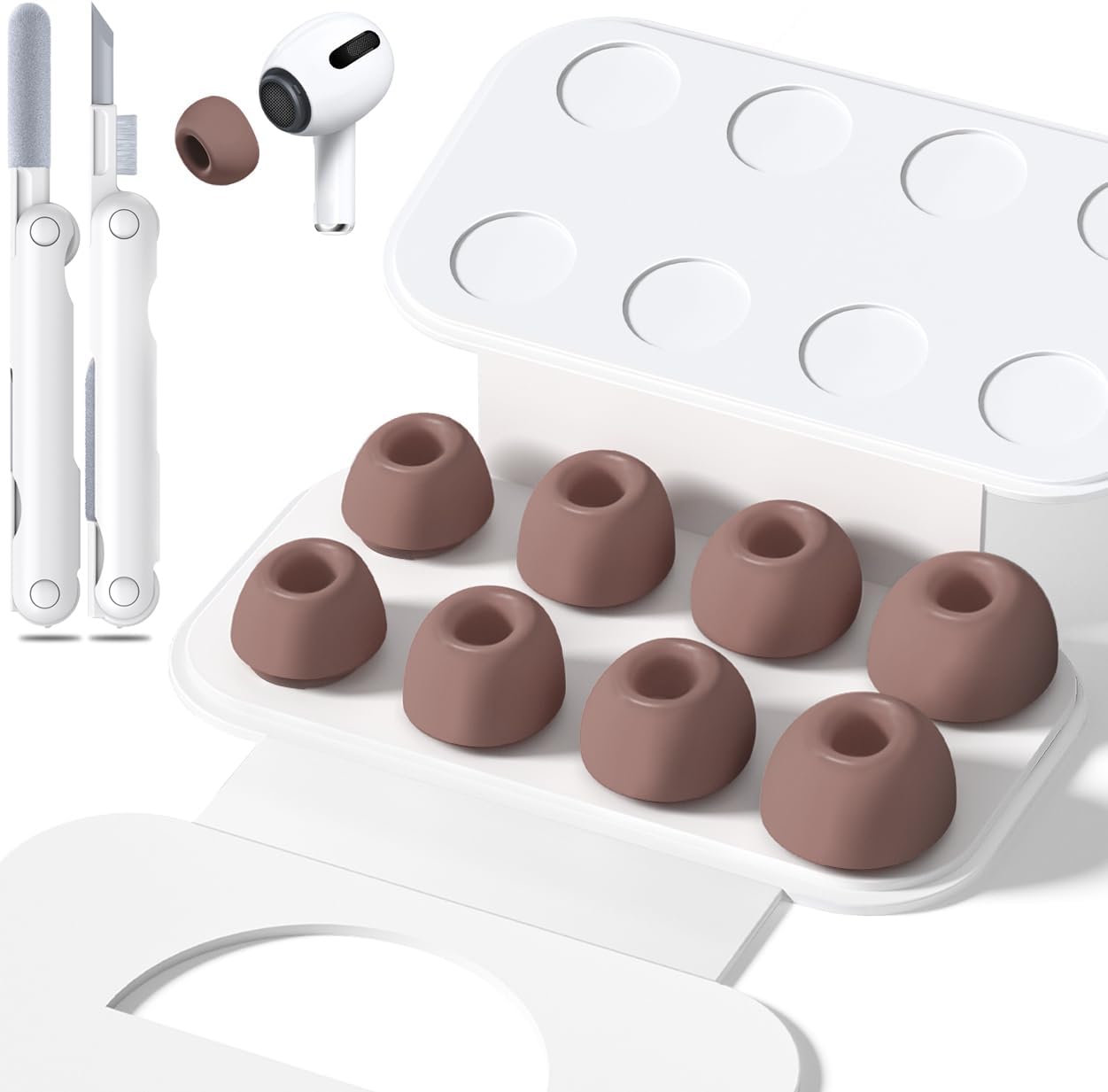 4 чифта резервни накрайници за уши за Airpods Pro 1/2 с отвор за намаляване на шума, силиконови тапи за уши за Airpods Pro с комплект за почистване и преносима кутия за съхранение, 4 размера (XS/S/M/L) светлокафяви