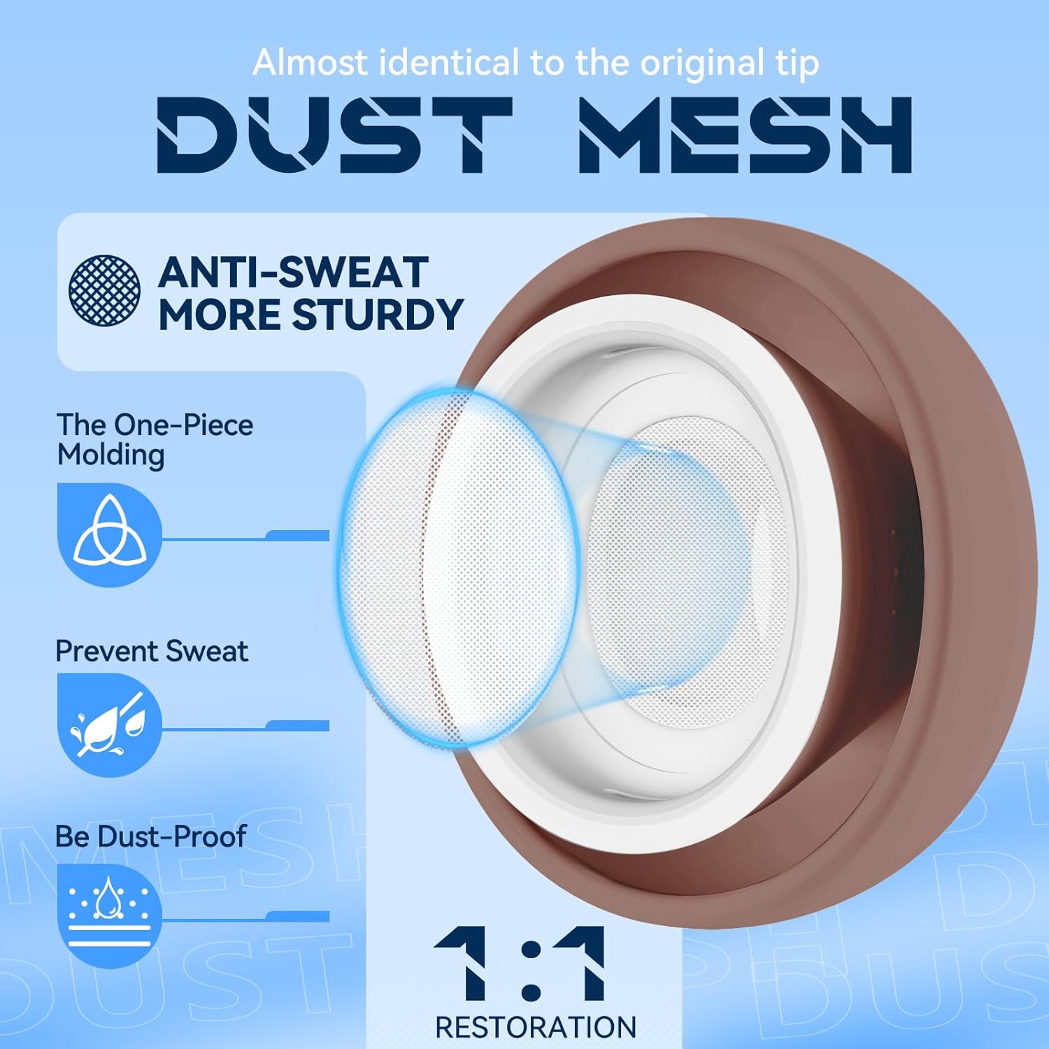 • Система за филтриране на частици: Всяка резервна слушалка е снабдена с двуслойна защитна мрежа, която блокира до 98% от праховите частици и влагата да не навлизат в слушалките, запазвайки яснотата на звука дори при продължителна употреба.