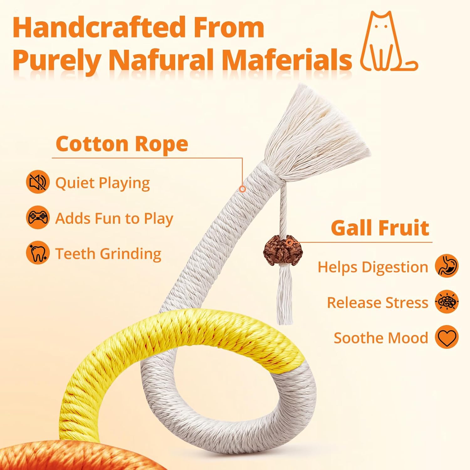1. Тази играчка за дъвчене за котки е изработена от естествено памучно въже, здрава и мека, безопасна и издръжлива.