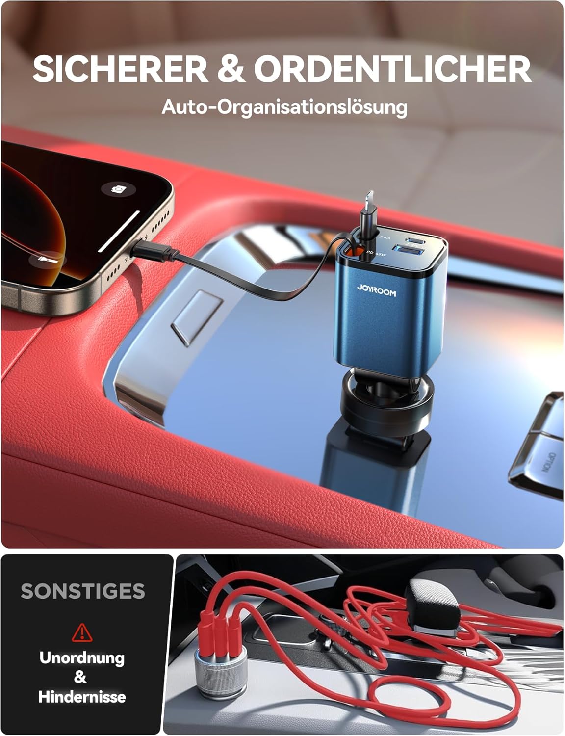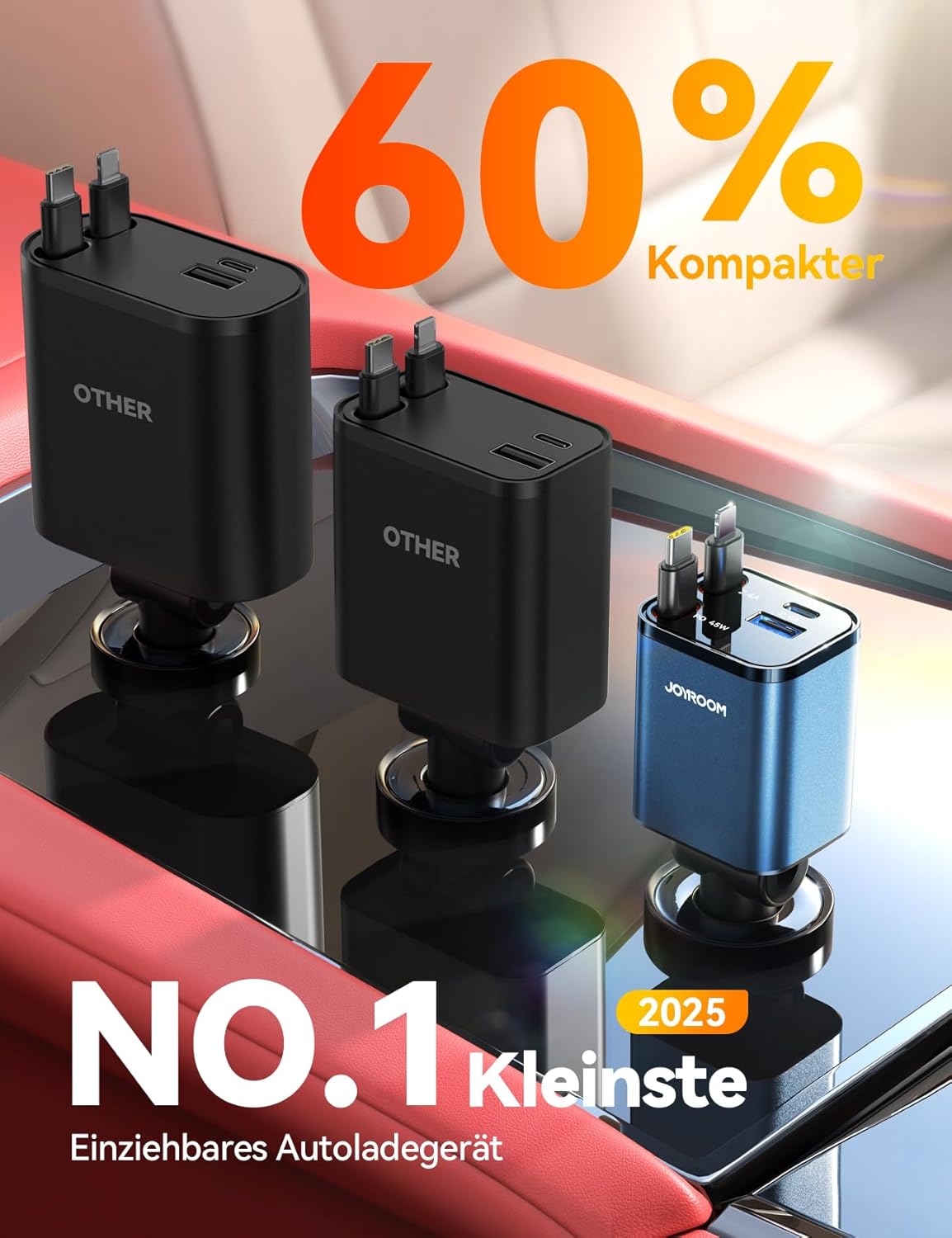 • Ултра-малка USB запалка за цигари: JOYROOM 2025. Най-малкото прибиращо се зарядно за кола (13 x 4,5 x 2,25 см), което се вписва идеално в наклонения и тесен порт за запалка в колата. Като един от незаменимите автомобилни аксесоари за семейни пътувания, компактният му дизайн спестява място и е много подходящ за малки пространства като кемпери и камиони.